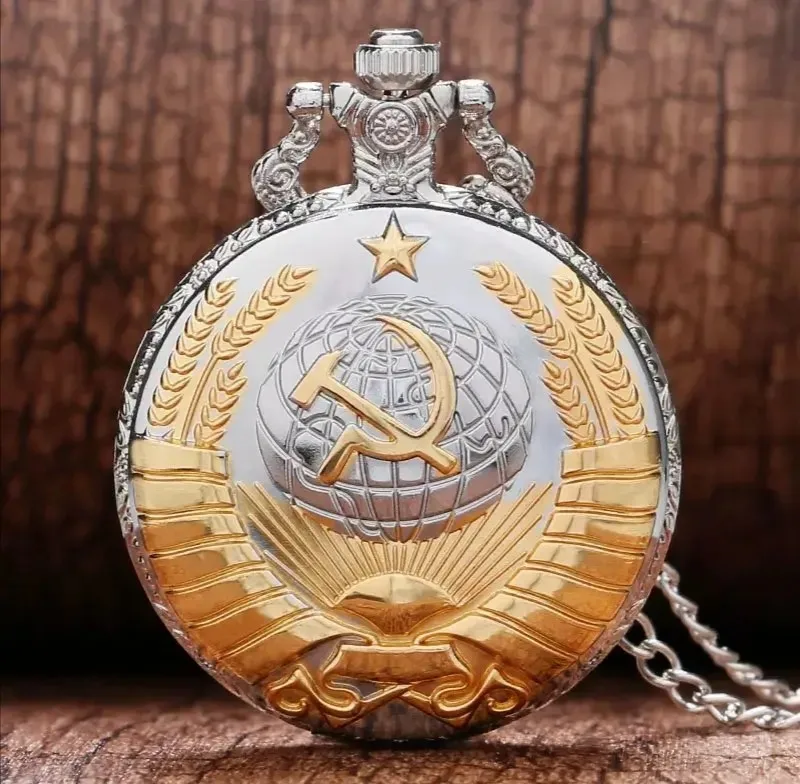 Наручные часы в стиле СССР, кварцевые карманные часы с серповидным молотом, эмблемой России, коммунизмом, унисекс, цепочкой и ремешком