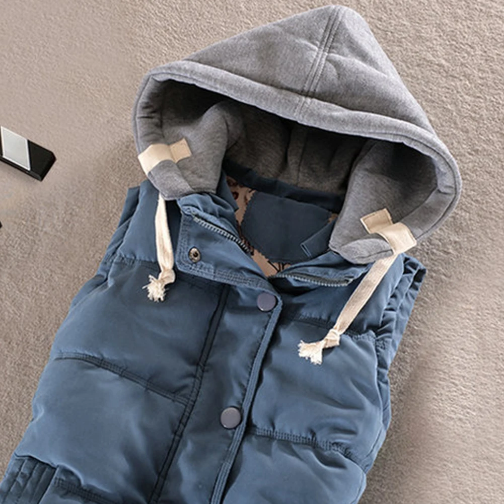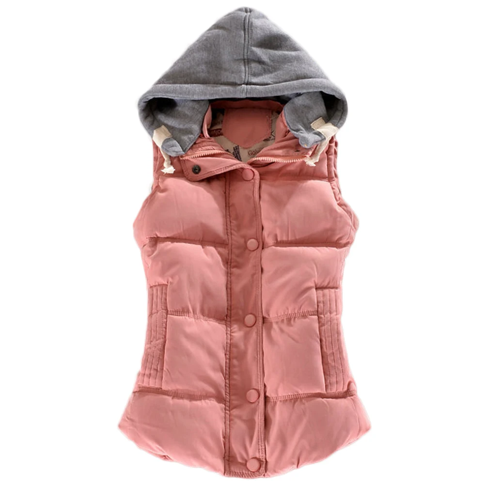 Женский зимний жилет с хлопковой подкладкой и капюшоном, жилет на молнии, безрукавка, куртка, жилеты, женский жилет с карманами, однотонный
