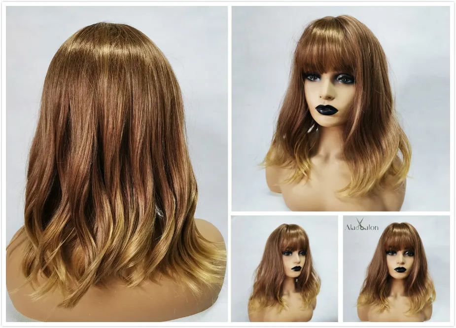 Парики женские из натурального пепельного оттенка, с эффектом деграде, с челкой