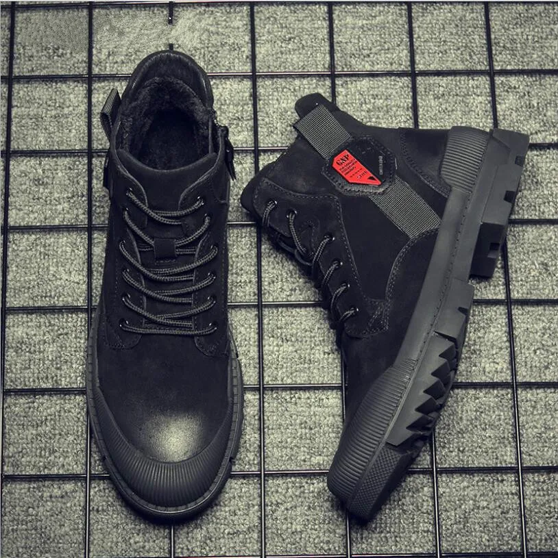 Мужские кроссовки JX64, черные, зимние, из натуральной кожи, на шнуровке, с круглым носком, на плоской подошве, повседневные, дизайнерские кроссовки для мужчин