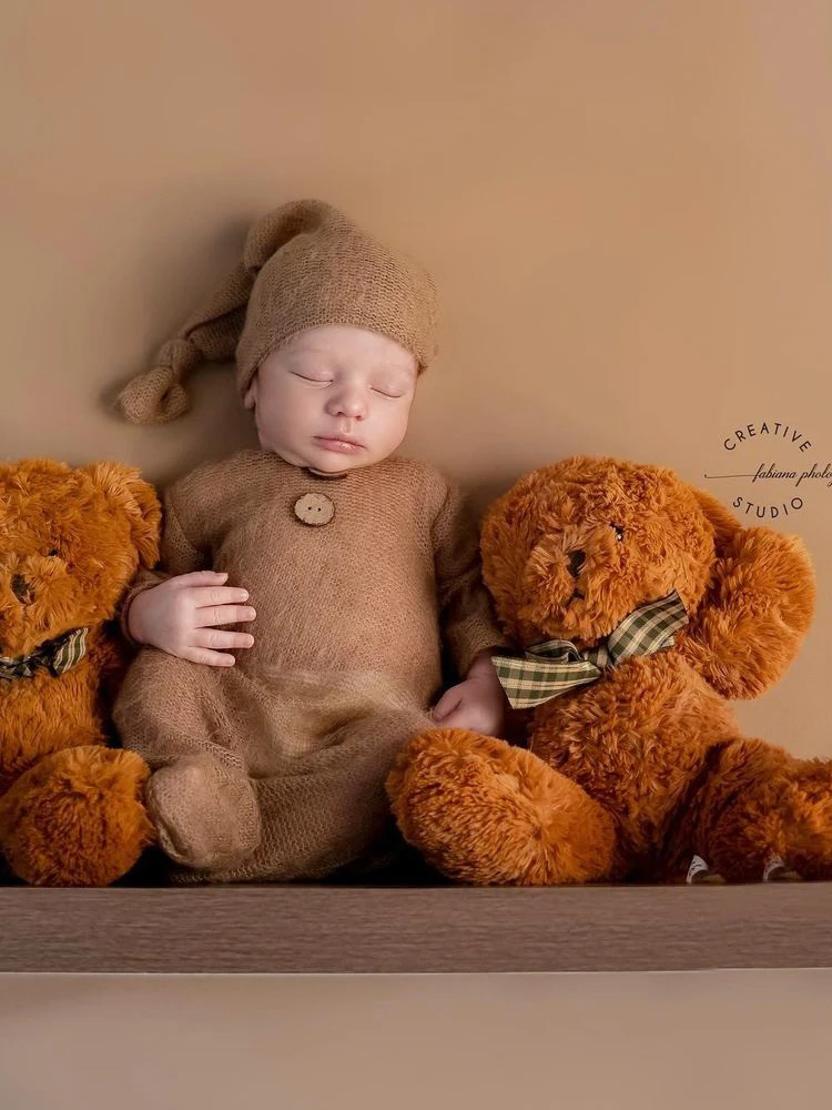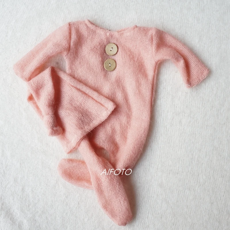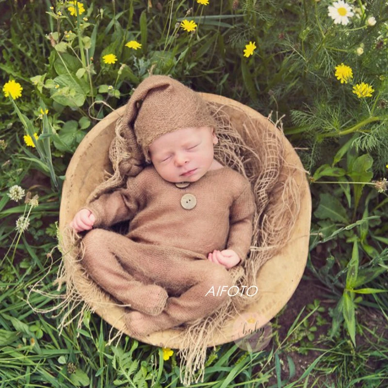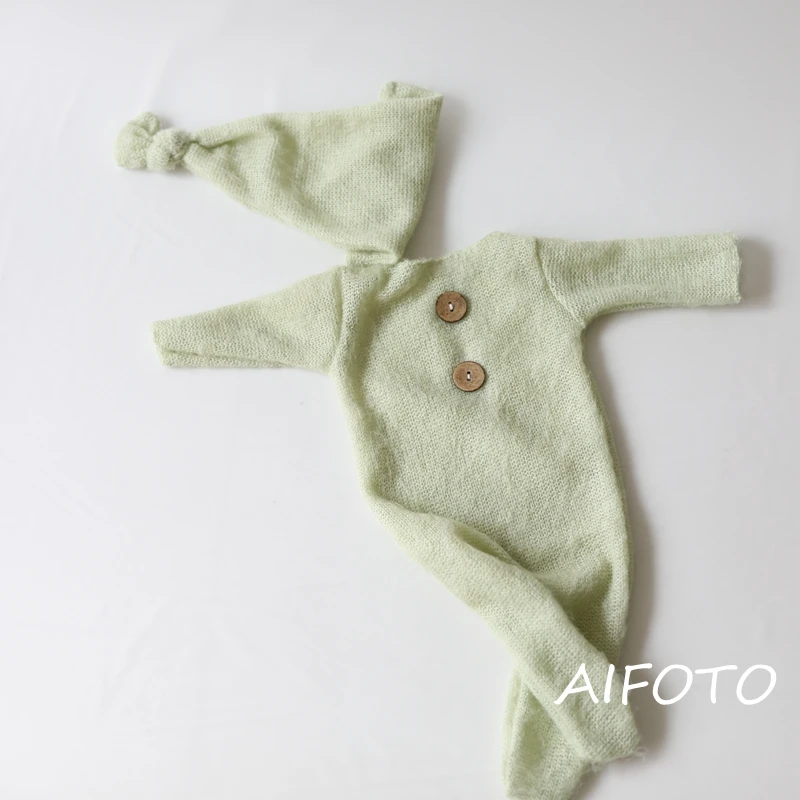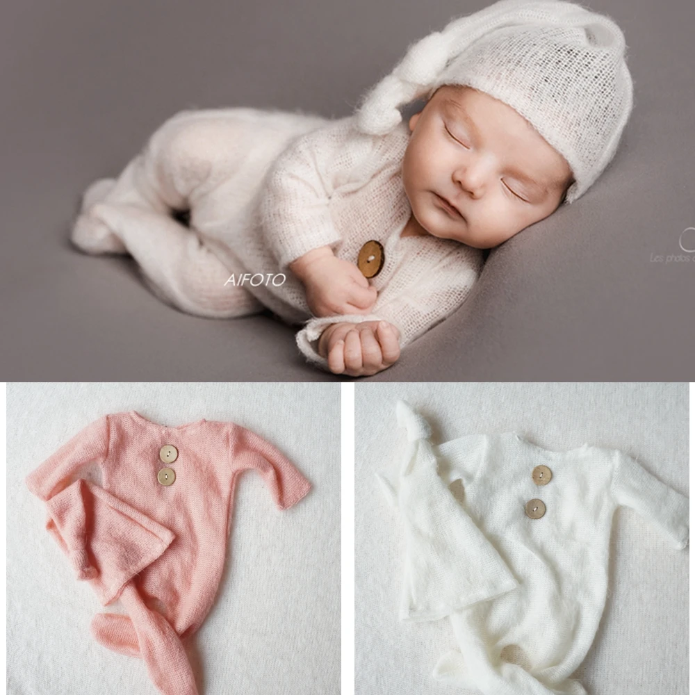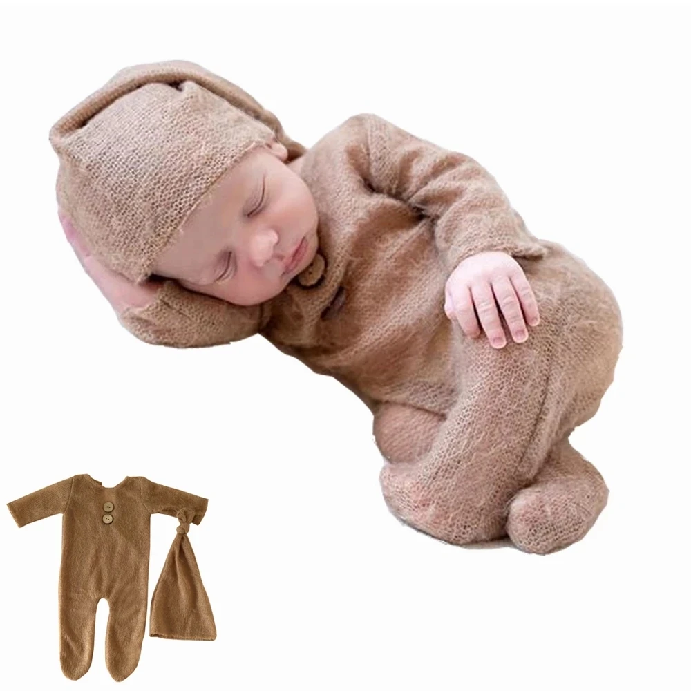 Реквизит для фотосъемки новорожденных наряд трикотажный мохеровый головной убор для девочек и мальчиков + комбинезон, Детские аксессуары для фотосъемки студия оптовая продажа комплект одежды
