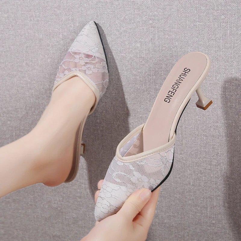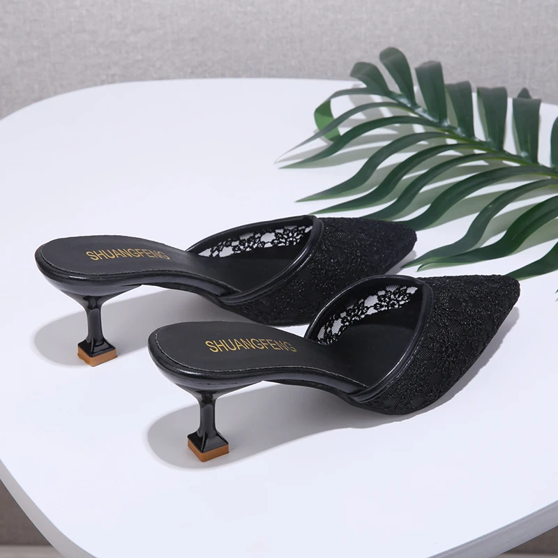 Женские шлепанцы с острым носком, летние, из эластичной сетки