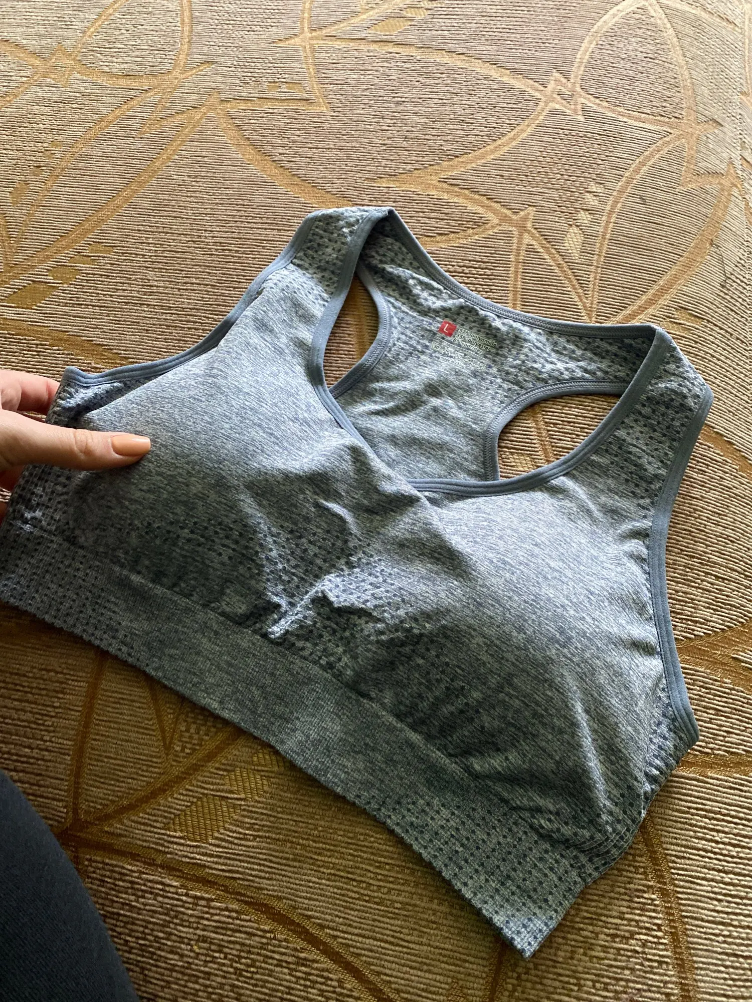 Топ реально хорошего качества, но на параметры груди 82см размер S маловат, сжимает и делает грудь плоской. Для комфортных занятий рекомендую брать на размер больше.