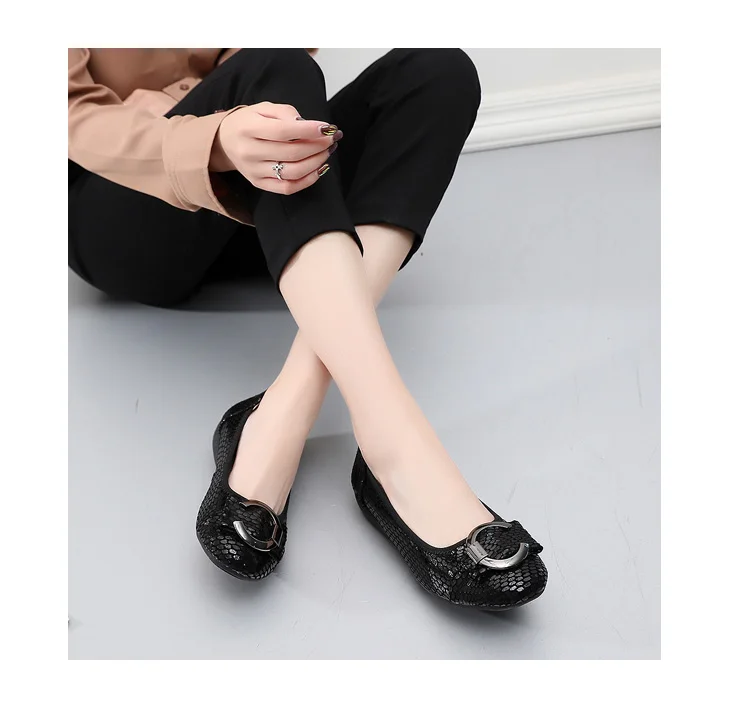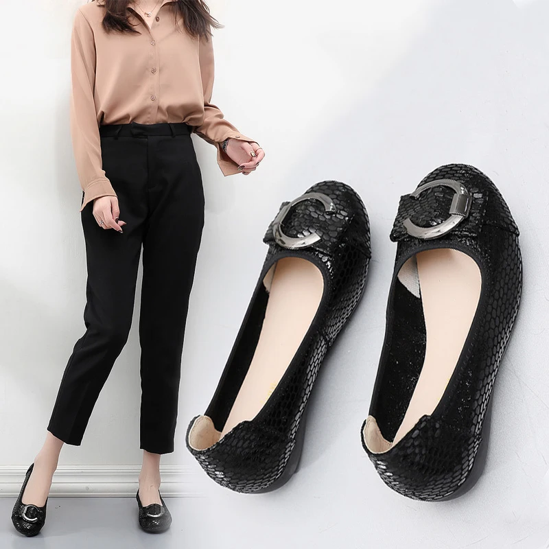 OUKAHUI весенние 2021 новые женские балетки из натуральной кожи с к...