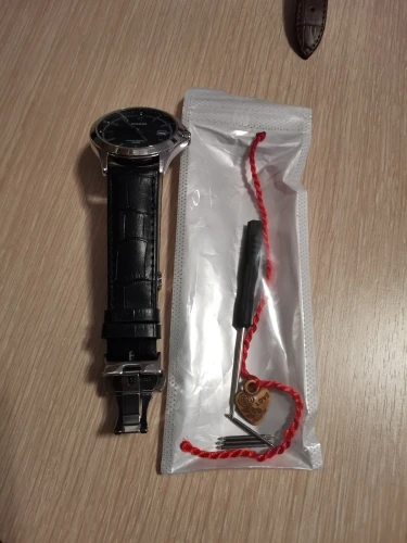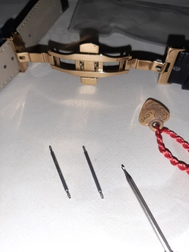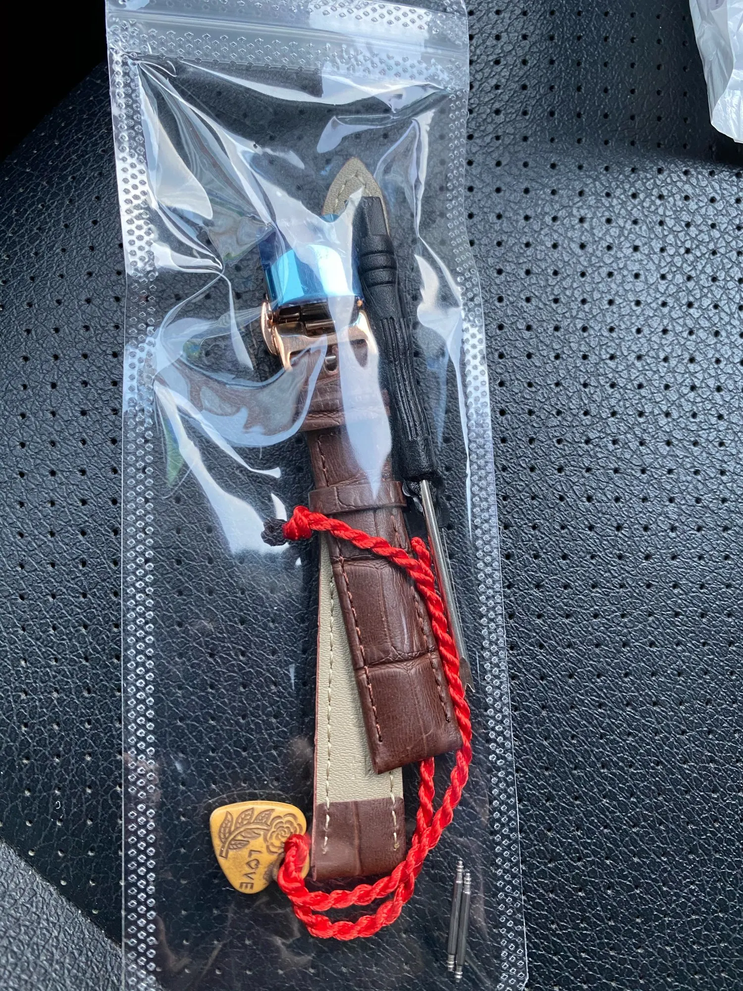 Ремешок из кожзама. Замок закрывается нормально, но при частом использовании незнаю, как прослужит долго. Краска тоже, как долго будет держаться незнаю. Размер ремешка на небольшую руку. С продавцом не общался. В комплекте «душки» и инструмент. Нормально для своих денег. Спасибо продавцу.