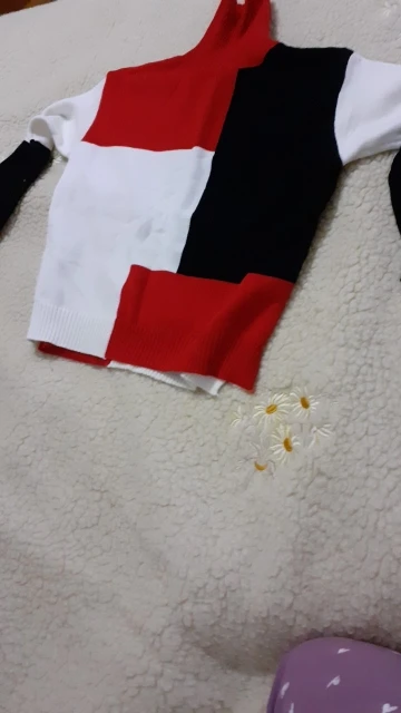 Цвета на картинке и реальность очень разные. На самом деле цвета намного ярче, из-за этого свитер смотрится дешевле. Рукава норм, а общая длина коротковата.