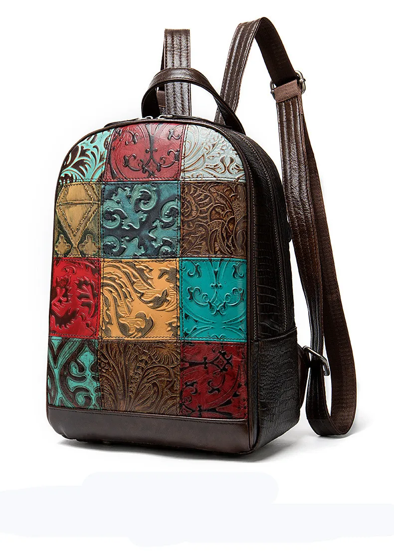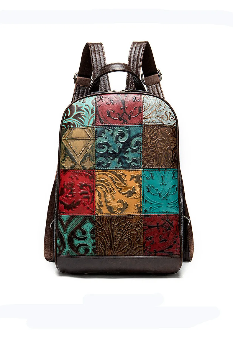 Винтажный красочный платный рюкзак из натуральной коровьей кожи для женщин