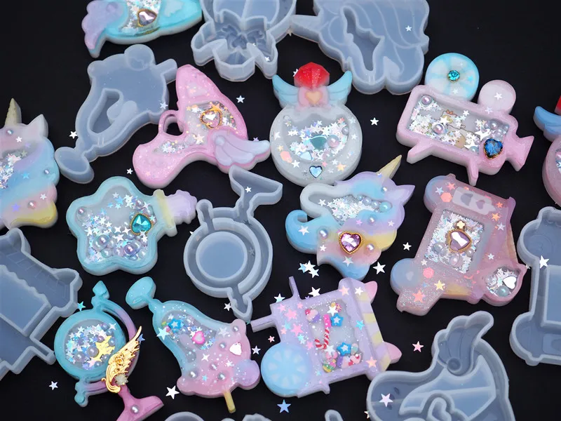 Милые формы-шейкер в форме пистолета, сделай сам, подвески из эпоксидной смолы, ювелирные изделия, конфеты, автомобильный сок, силиконовая форма, инструмент из уф смолы, единорог, теллурон, Декор