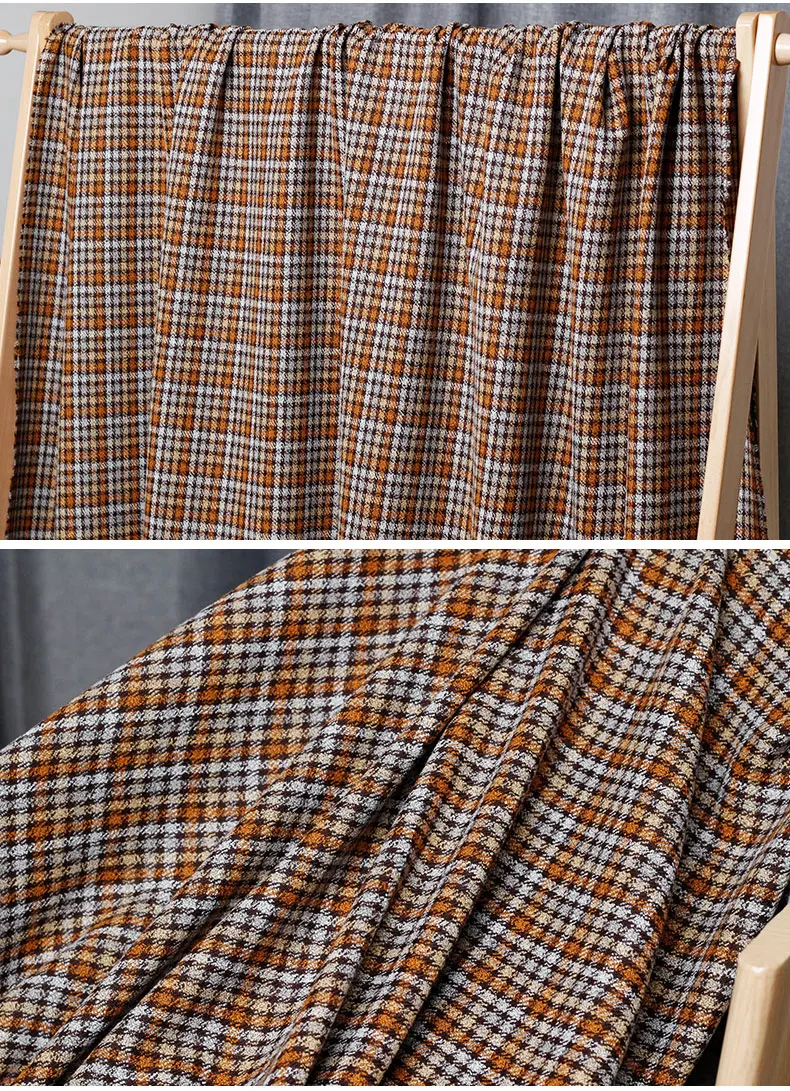 Новая окрашенная пряжа шерстяная ткань в клетку Оранжевая осень-зима пальто юбка одежда высококачественная ткань на заказ красота