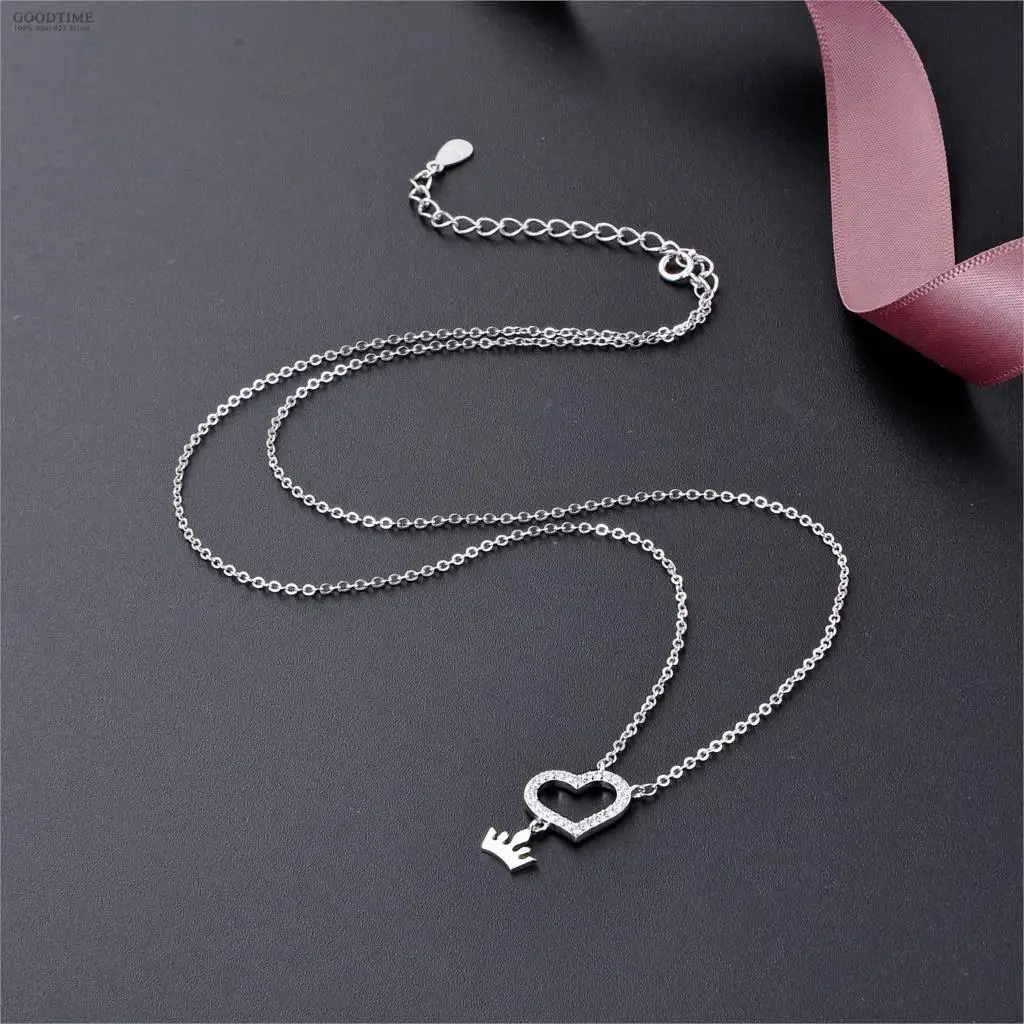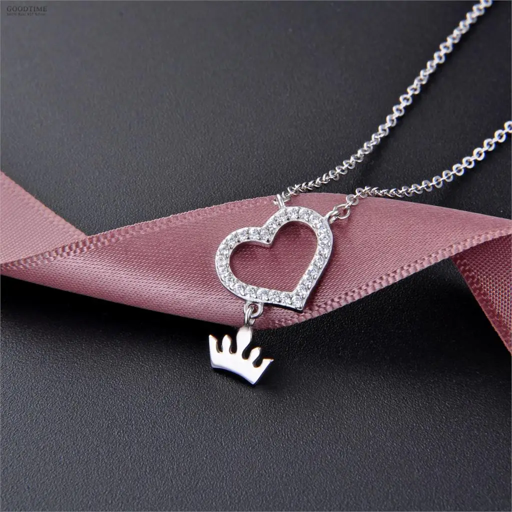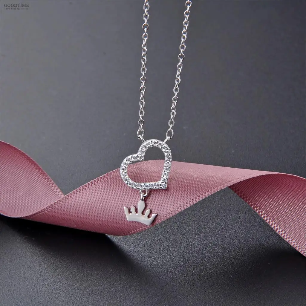 Женское ожерелье из серебра 925 пробы с кулоном в виде короны