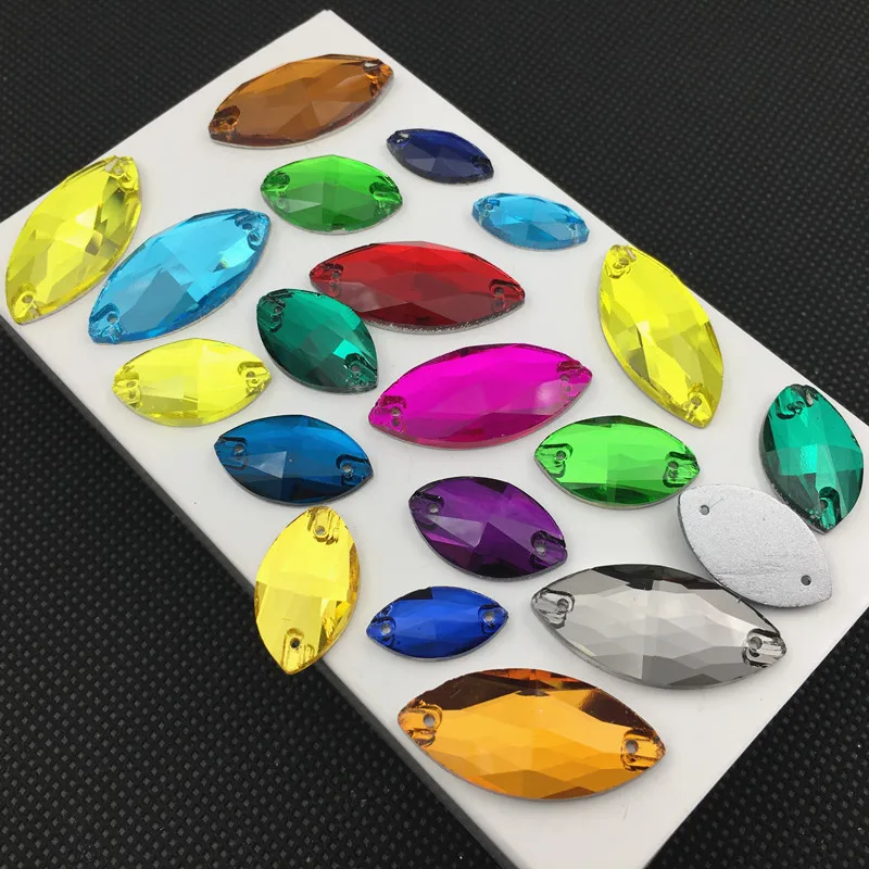 Стеклянные стразы для пришивания, все размеры, все цвета, 3223 navette, кристаллическое Украшение конский глаз пуговицы для свадебного платья
