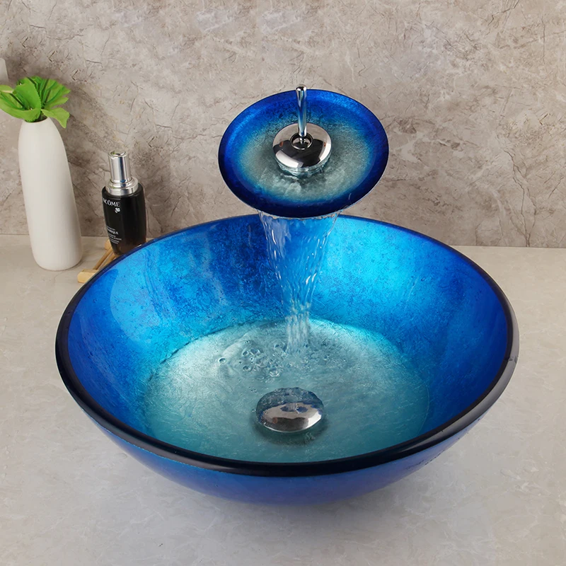 ZAPPO синий круглый смеситель для умывальника из закаленного стекла...