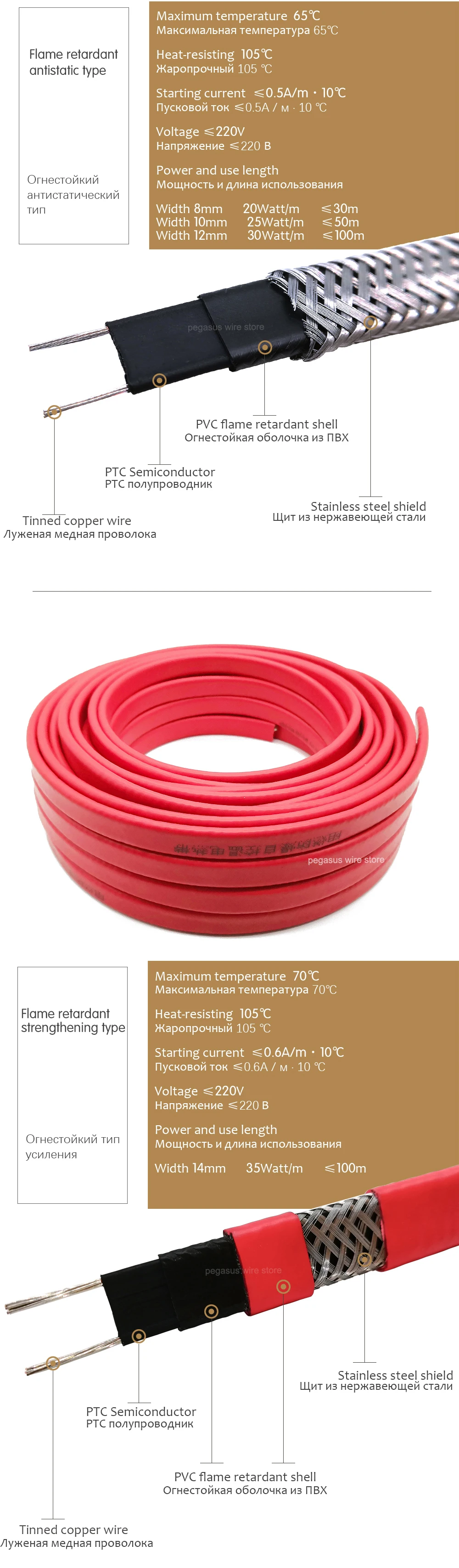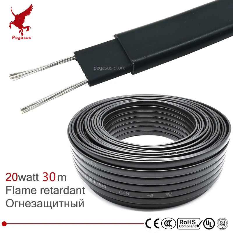 Нагревательный кабель огнестойкого типа, 30 м, 220 В, W = 8 мм, самостоятельная регулировка температуры, защита водопроводных труб, нагревательный кабель для предотвращения оледенения крыши