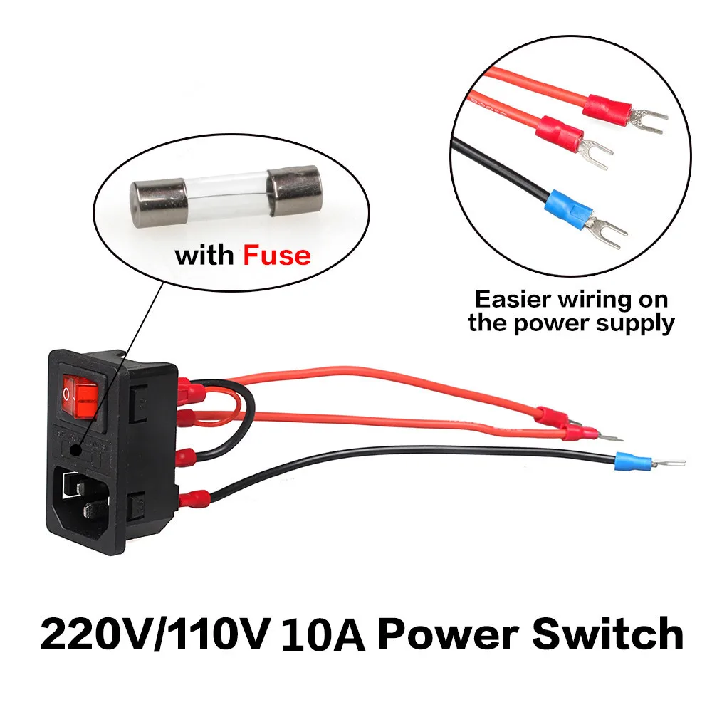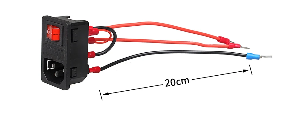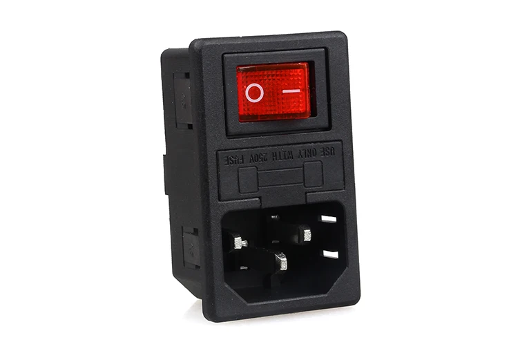 5*20 10A предохранитель, красный кулисный выключатель с плавким предохранителем IEC320 C14, блок питания на входе, с кабелем 20 см