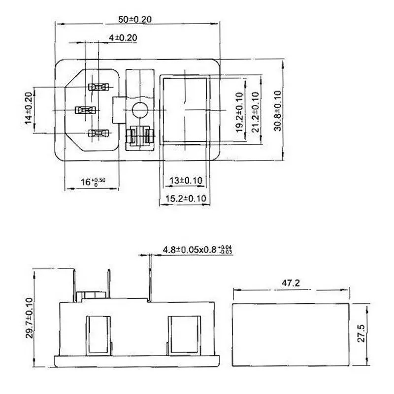 Монтажный Размеры (не включает pin) : 4,7x2,7x1,8 см/1,85 "x 1,05" x 0,71 " (L * W * H); Общая Размеры: 5x3x3,2 см/2'' x 1,2 ''x 1,3''(L * W * H)