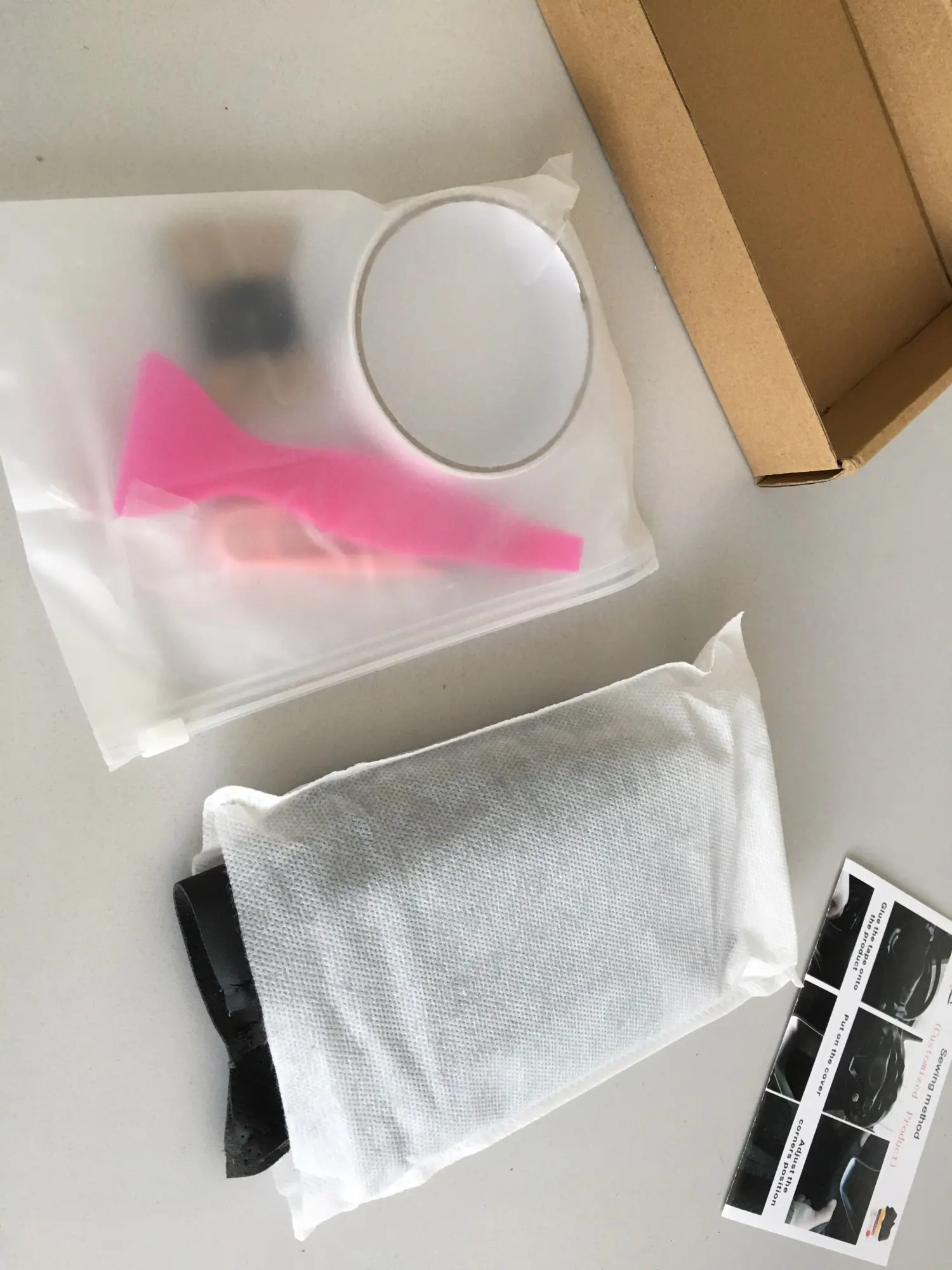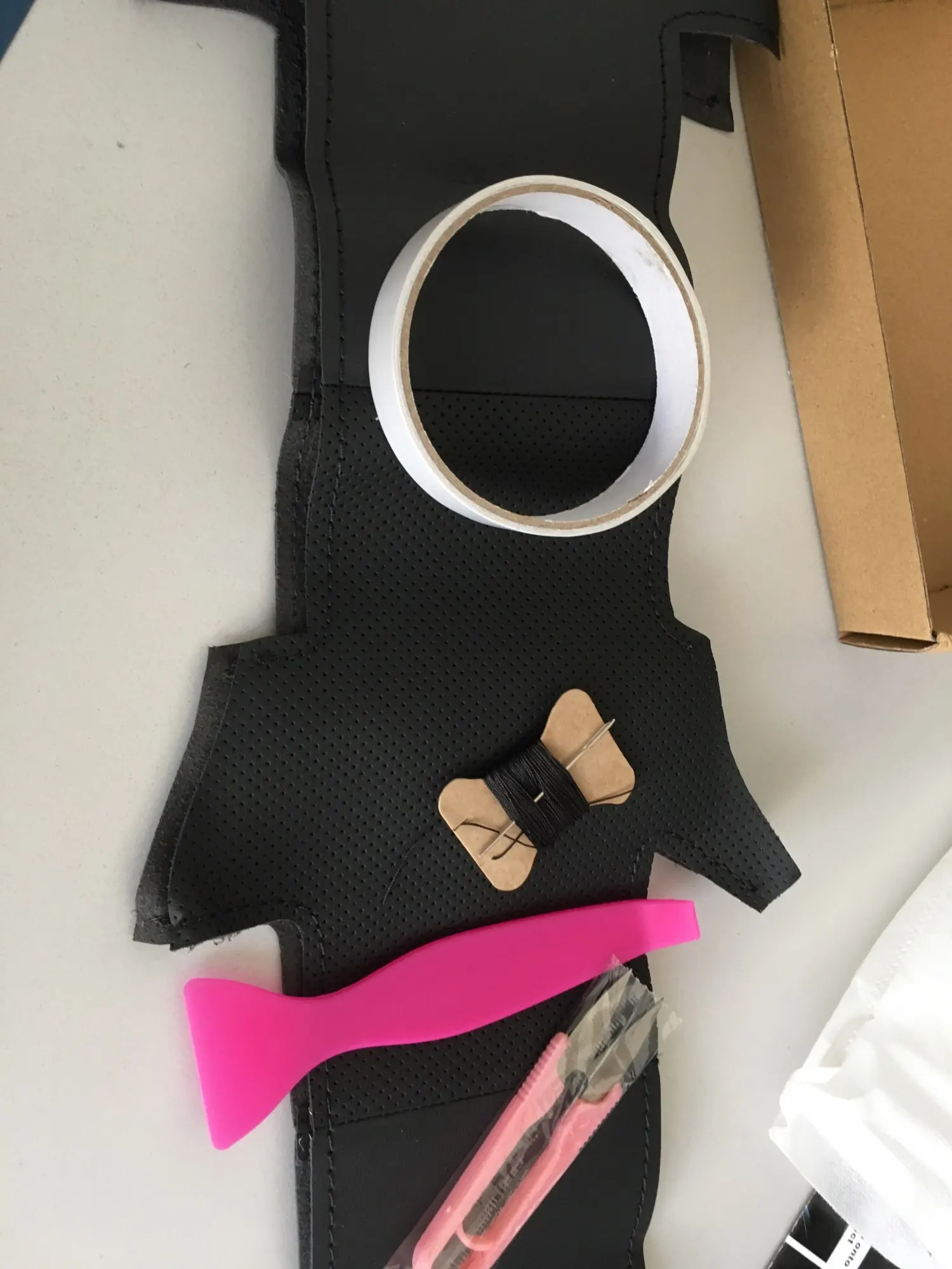 Крышка рулевого колеса *1Игла *1Нить *1Двусторонняя клейкая лента *1Лезвие *1Наперсток *1