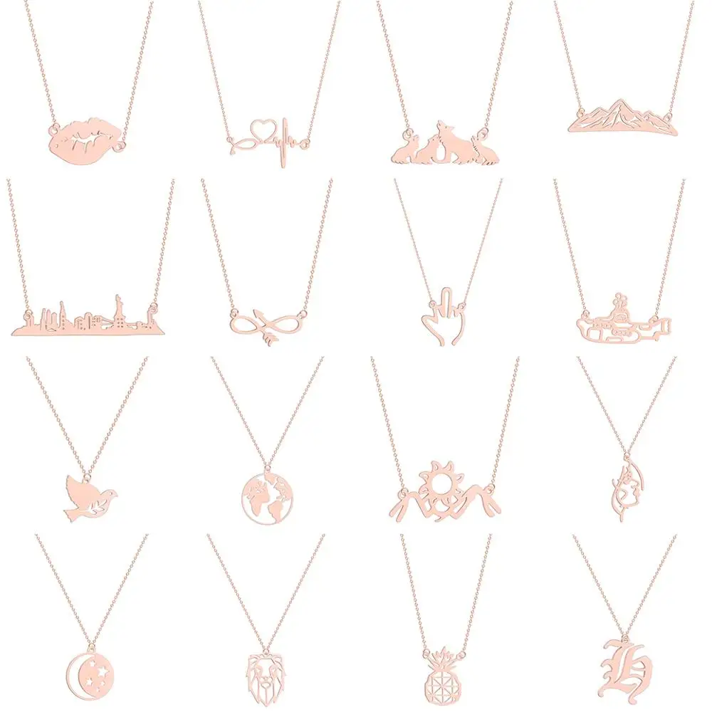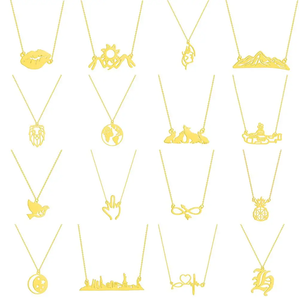 Подвески QIAMNI в виде ананаса, губ, птицы, рук, звезд, солнца, Льва, карты, волка, стрелы, сердцебиения, ожерелья, чокеры, подарки для любимых, украшения на день рождения