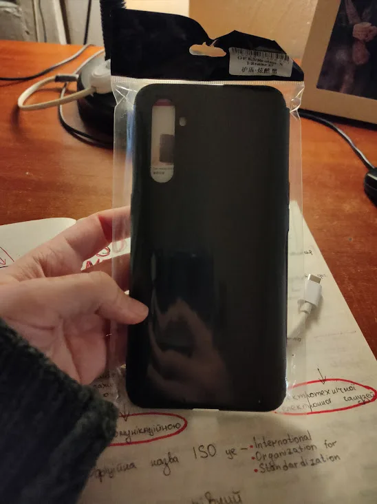 Чехол классный!На Realme 5pro сел идеально!Приятный пластик,отпечатков не оставляет.Будьте аккуратны,когда надеваете чехол,у меня не много отошло защитное стекло("розгладила" без пузырей). Заказала 11.11 ,приехал 03.12.