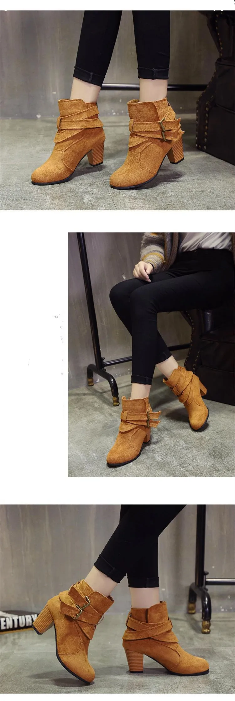 Женские ковбойские ботинки на толстом каблуке 6 см, замшевые ботинки, осенняя модная обувь на блочном каблуке с пряжкой, 2020