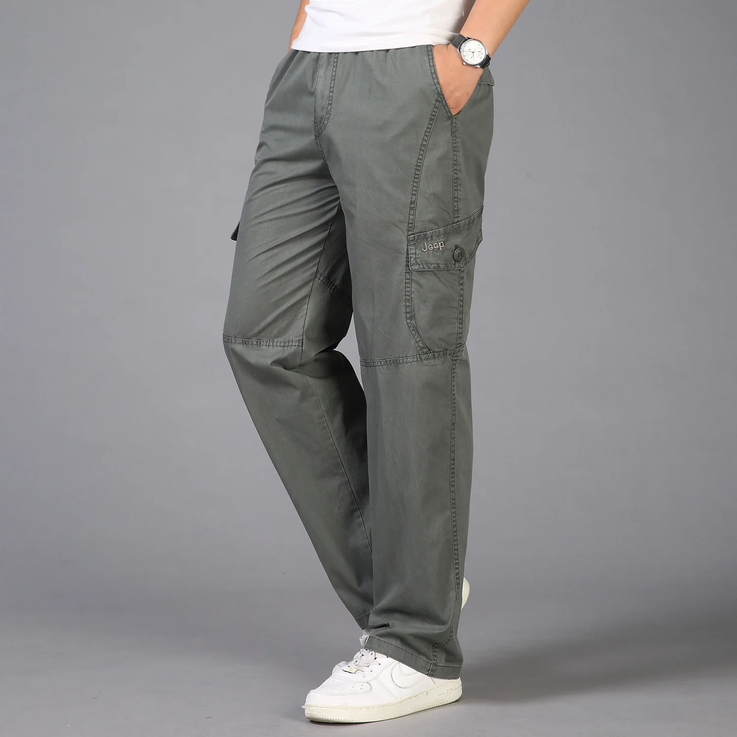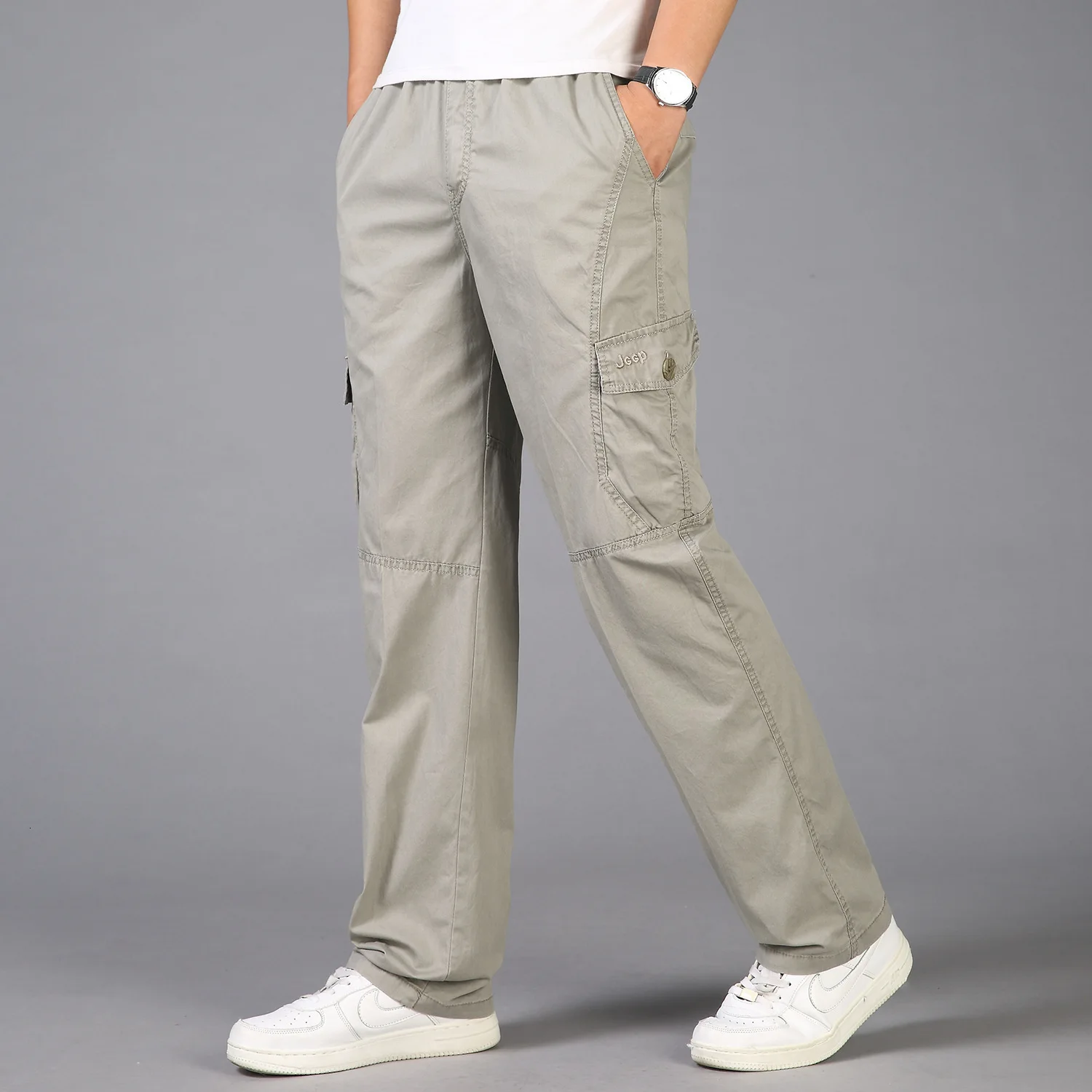 Весенне-летние модные мужские брюки повседневные хлопковые длинные ...