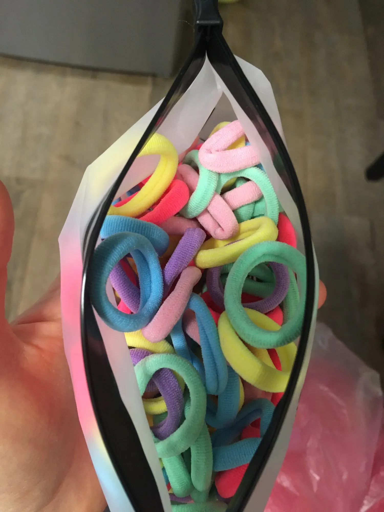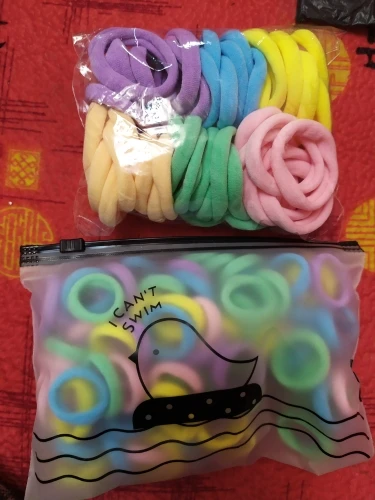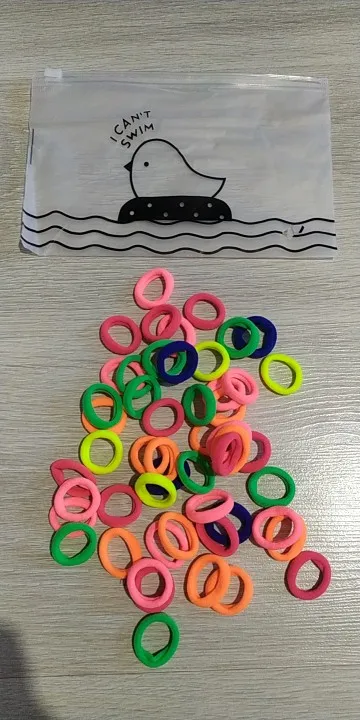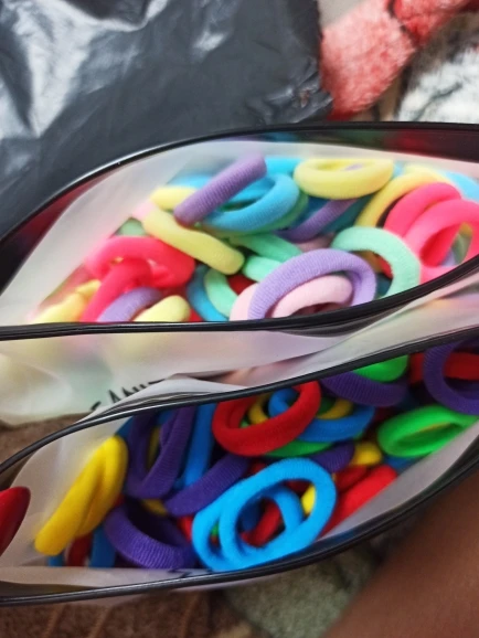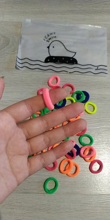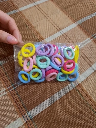 Не поленилась и пересчитала, 99 вместо 100. Но резиночки крошечные, яркие, детские волосы завязывать самое то.