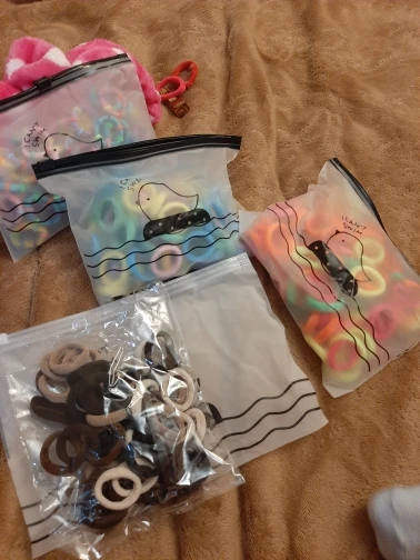 Замечательные резиночки и заколки! Яркие, в огромном кол-все, упакованы в пакетики-косметички. Очень понравились! Рекомендую продавца и товар!