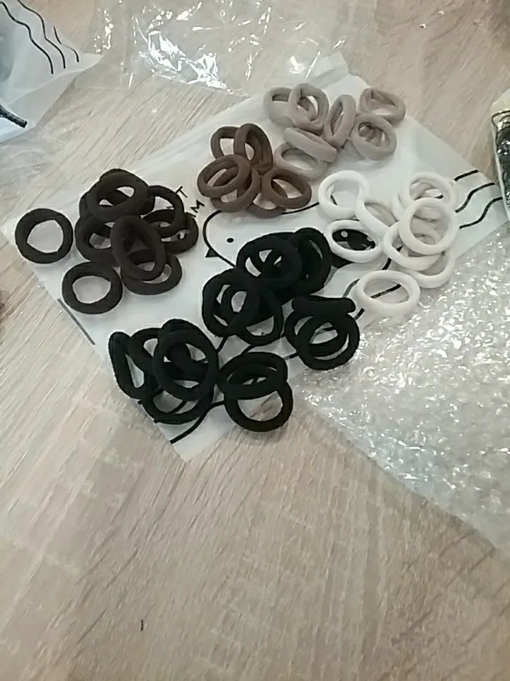 Неплохие резиночки. 49 шт:) самых нужных бежевых и светло коричневых меньше всех:) Доставка в СПб около месяца. В дополнительный пакетик положили. Получила на кассе в Пятерочке. В целом все хорошо!