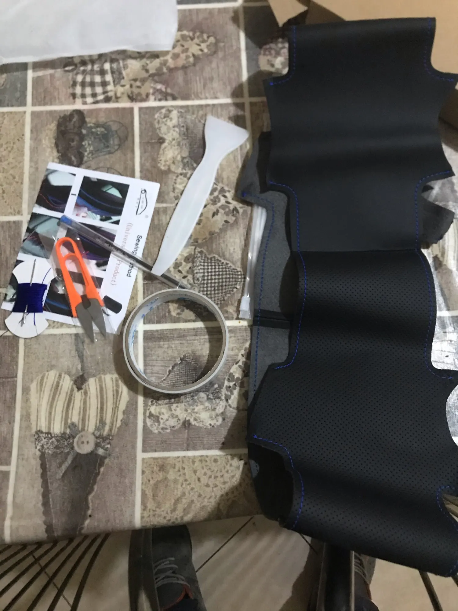 Крышка рулевого колеса *1Игла *1Нить *1Двусторонняя клейкая лента *1Лезвие *1Наперсток *1