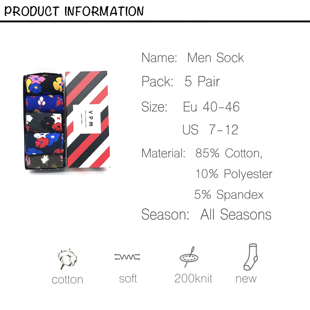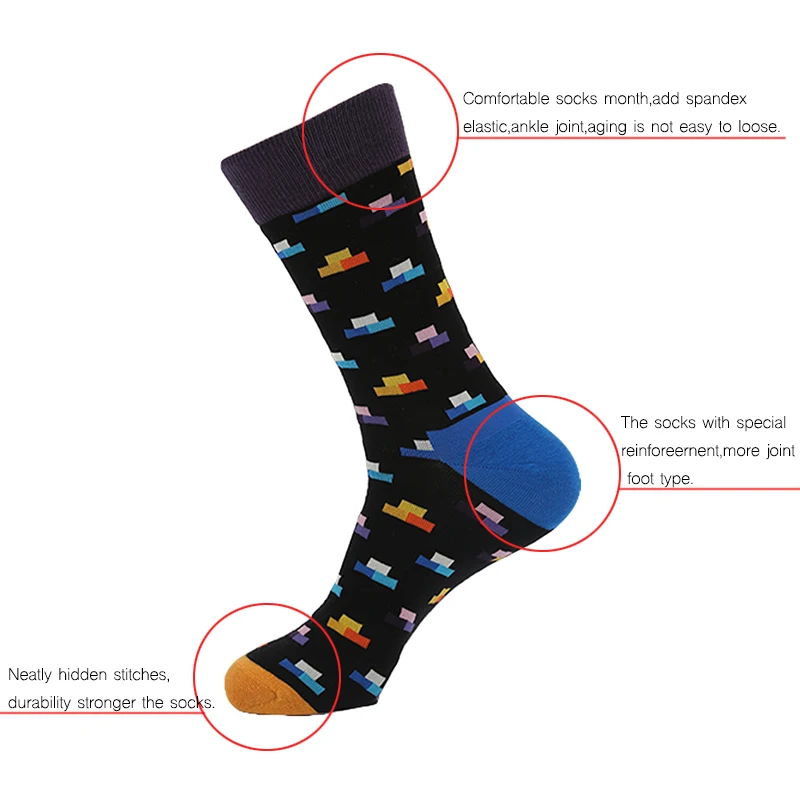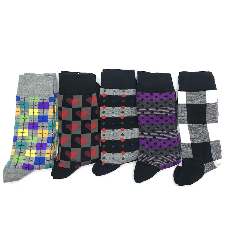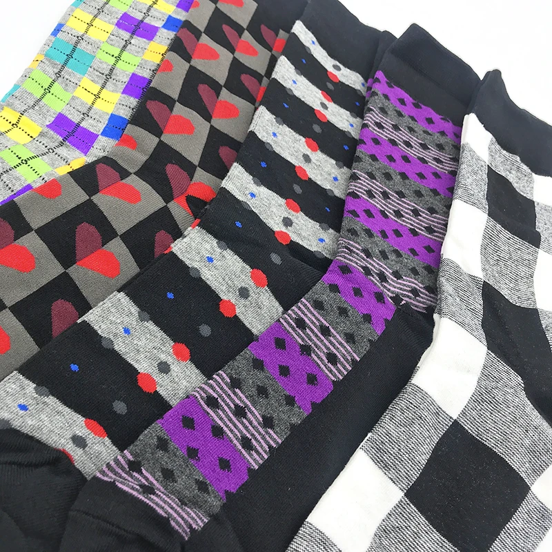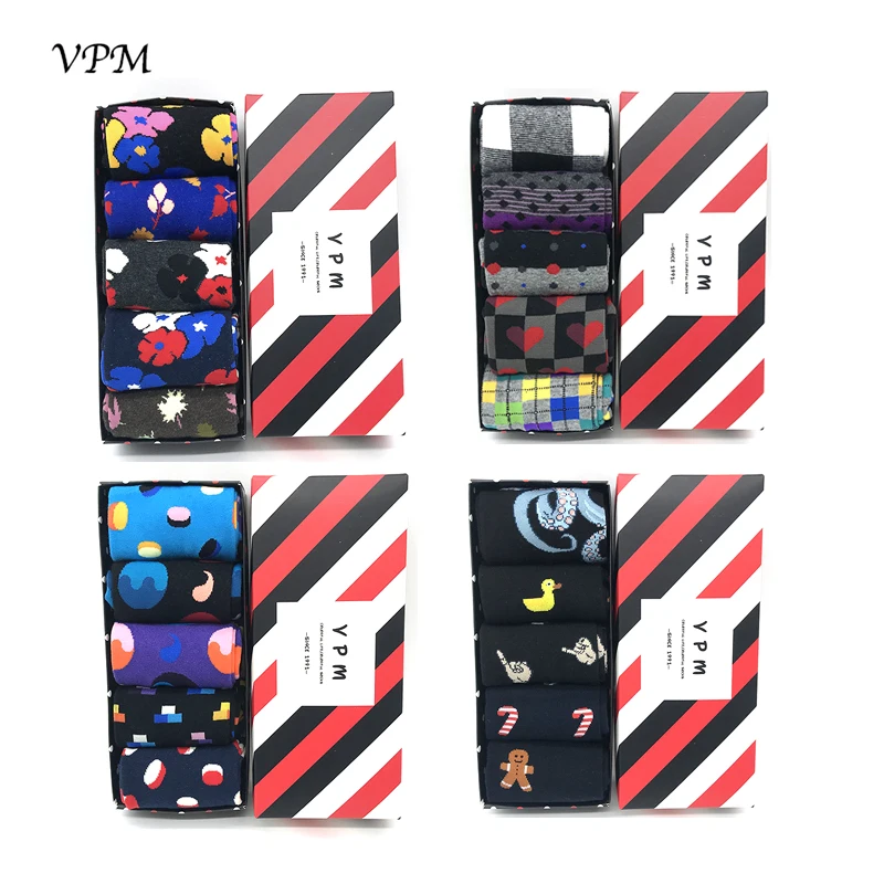 VPM подарочной коробке красочные чесаный хлопок Для мужчин нескользящих носочков платье Бизнес Harajuku прохладный черный серый решетки тетрис 5 расцветок, парлот