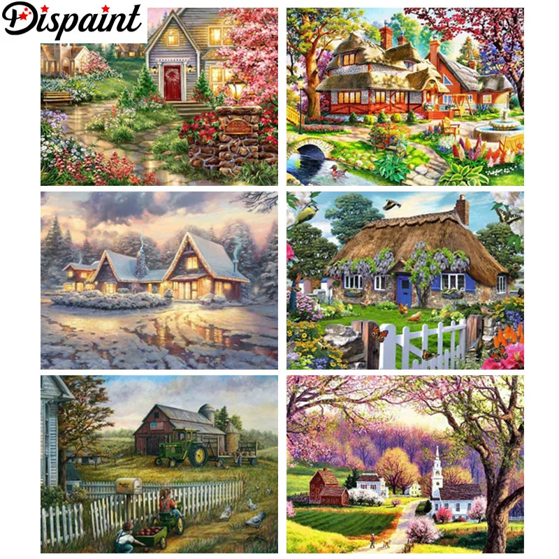 Dispaint, полная квадратнаякруглая дрель, 5D, сделай сам, алмазная живопись "красивый пейзаж дома", 3D вышивка крестиком, 3D, домашний декор, подарок