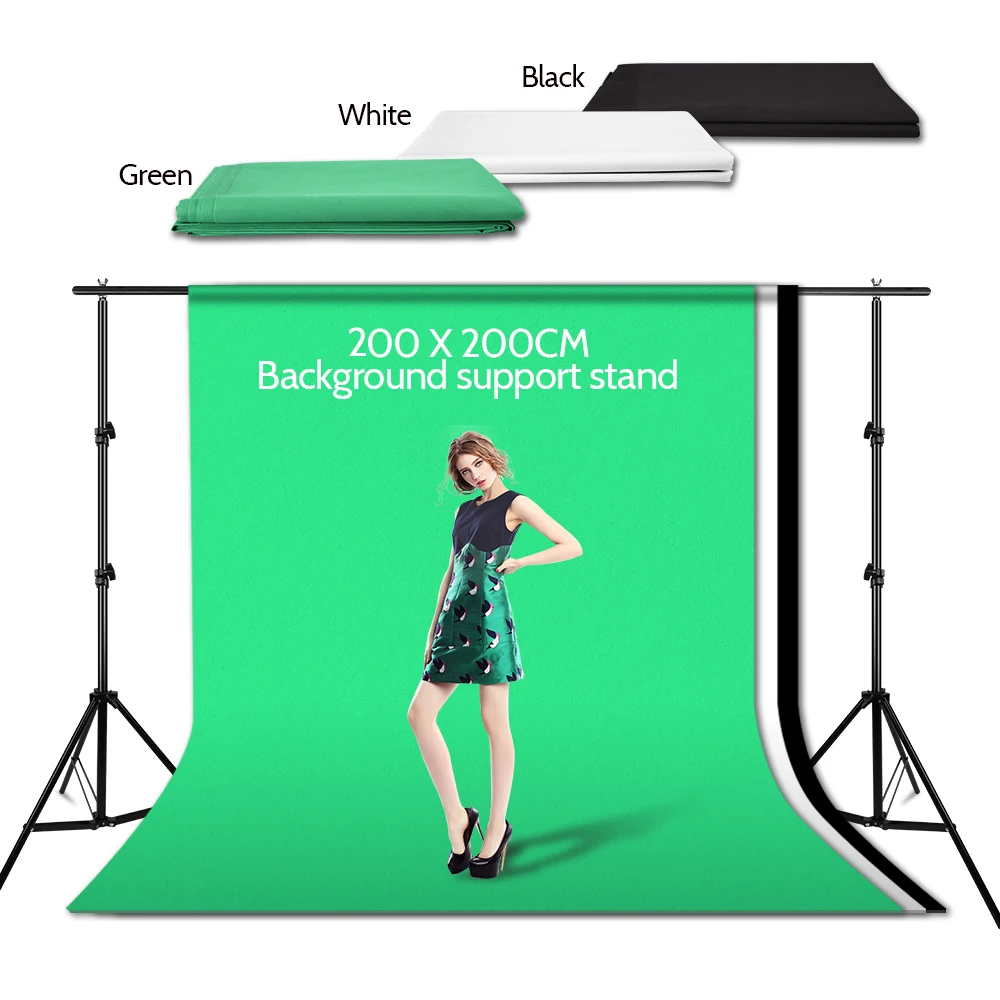 【Модернизированные фоны 】 этот комплект поставляется с 3x1,6x3 м фоны из нетканого материала (черный, белый, зеленый), фон был улучшен, не отражает, прост в обращении и обслуживании. Помогает отскочить светильник и осветлить все. Также помогают выделять более яркие цвета, такие как красный и оранжевый. 【Регулируемая подставка для фона 】 этот комплект представляет собой профессиональную подставку с регулируемой высотой (мин 2,3 футов-Макс 6,6 футов) и шириной (мин 4 футов-Макс 6,6 футов). Изготовлен из алюминиевого сплава с профессиональным черным покрытием. Может быть собран одним человеком всего за несколько минут. Опорная подставка также имеет универсальную резьбу 1/4 дюйма (патрон/шпилька), может использоваться в качестве светильник кой подставки, на ней можно прикрепить почти все световые сборки. 【Применение 】 этот продукт содержит 4 вида фоновых тканей в обычных цветах, подходит для различных сцен (студия, семья, Свадьба Вечерние, портретная продукция фотографии, видео производство и т. д.) для удовлетворения различных потребностей клиентов. Этот продукт является профессиональным фотографическим фоном для фотографов, но будь то новичок или профессиональный фотограф, использование этого продукта очень простое и удобное. 【Фон с клипсой 】 этот зажим имеет прочный захват с мягкими поворотными подушечками, которые подстраиваются под поверхность захвата. Маленькие зубцы на внутреннем диаметре удерживают муслиновую ткань или бумажные фоны на месте для фотосъемки. Можно повесить бумажные/Пластиковые/Нетканые фоны и все виды фотографий. 【Требует внимания 】поскольку мы транспортируемся после складывания, На полученном вами фоне неизбежно появятся складки. В это время вам нужно всего лишь открыть фоновую ткань, подвесить ее и оставить на несколько дней, чтобы убрать морщины; можно протереть складки влажным полотенцем, а затем нажать на нее книгой; Или сверните задник и отложите его в сторону. ** не допускается использование высокотемпературного парового утюга. Посылка: 1x1,6*3 м черный фон 1x1,6*3 м белый фон 1x1,6*3 м зеленый фон 1x2 м * 2 м подставка для фона 1 х сумка для переноски для фоновой поддержки 3 зажима