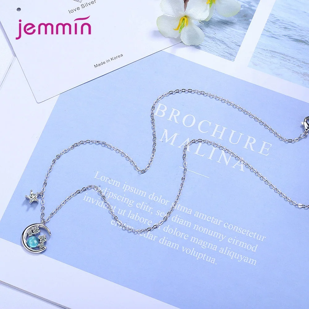 Кристаллы Луна Звезда блестящее серебро 925 пробы ожерелье высокое качество модные ювелирные изделия с натуральным цирконием камень чокер кулон