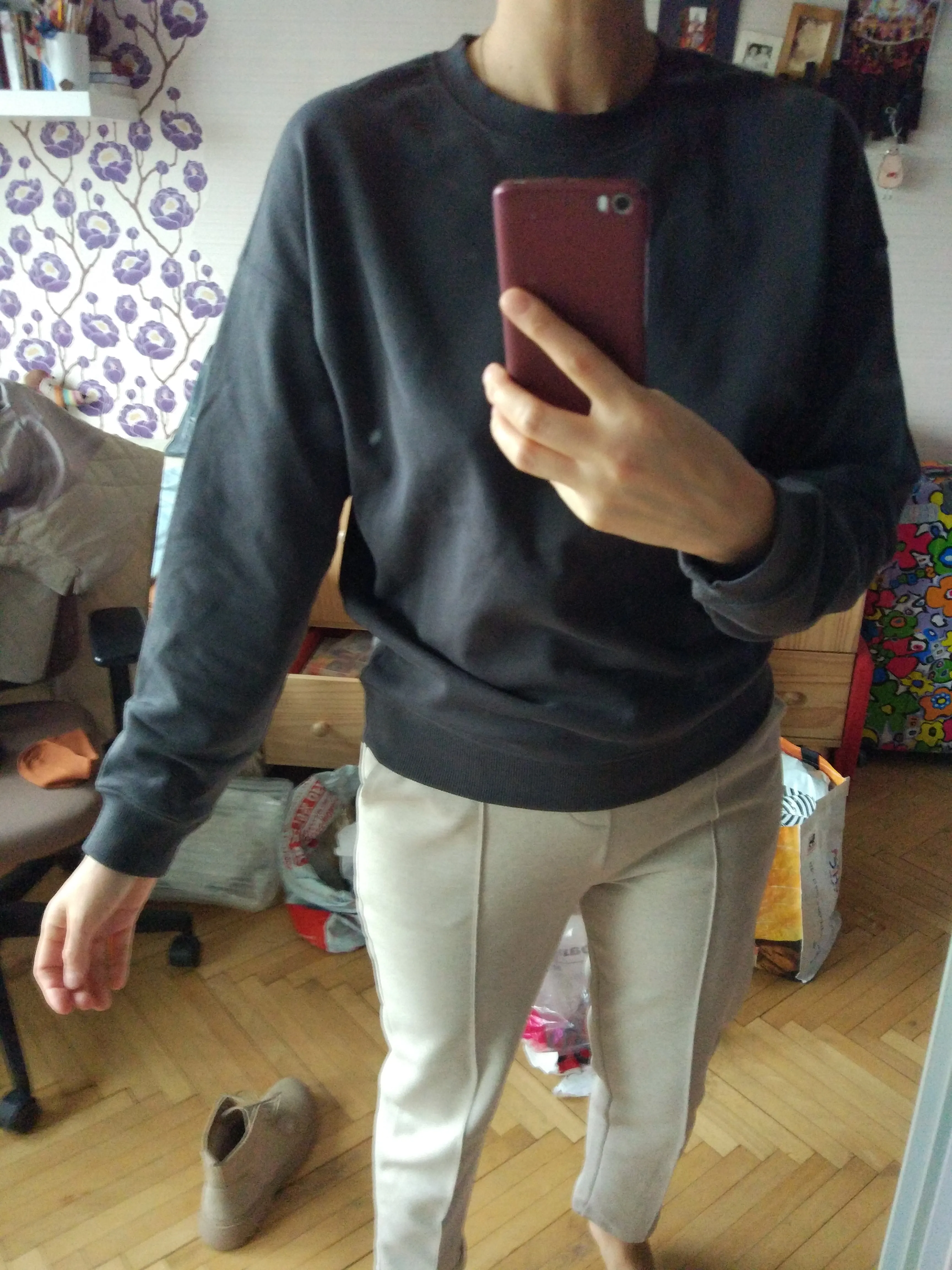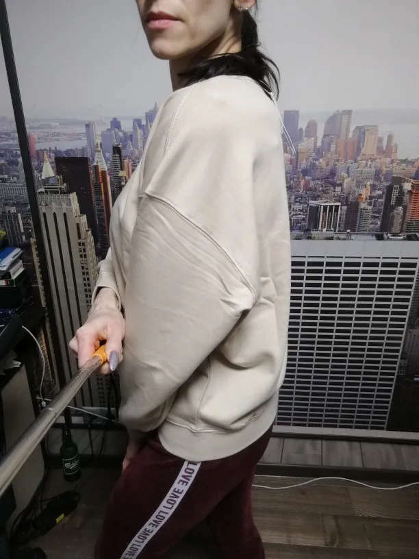 Свитшот просто бомба. Не думала, что на али есть настолько качественные вещи. Хочу теперь заказать в другом цвете. У меня есть похожий из h&m в 2 раза дороже и у этого качество ничуть не хуже. Заказала s, обычно его и ношу. Заказывала на чёрную пятницу, продавец не сразу отправил посылку и шла она довольно долго для «ускоренной» доставки- 1,5 месяца.