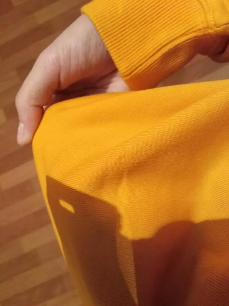 Очень хорошее качество, носится будет долго) очень приятная ткань, носить одно удовольствие, удобная, и понравились рукава "летучая мышь". Но есть одно НО! Я заказала БЕЛОСНЕЖНУЮ а пришла молочная! ((( я очень расстроилась, потому что видела по отзывам что писали про "кипельно белую" Скорее всего или перепутали и положили молочную или закончилась белоснежная и положили молочную. Сначала написала продавцу, он сказал что это и есть белоснежная, я открыла спор. Блин даже не извинился, только потом подумала "фиг с ним" и закрыла спор, тогда продовец и извинился... Приложила фото, в сравнении со своей белой футболкой, видно что худи "с желтинкой"
