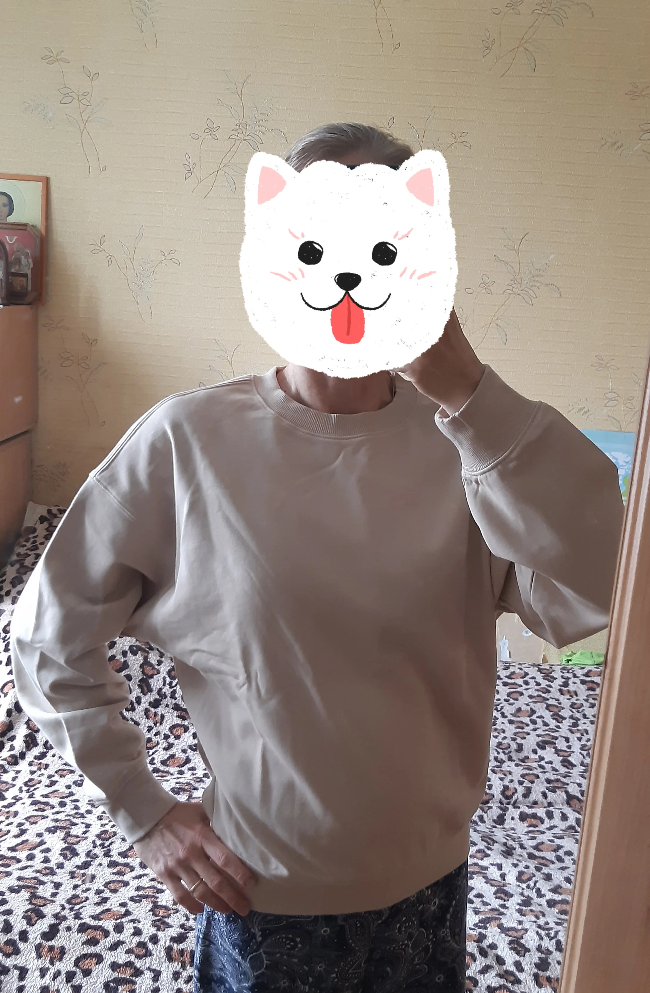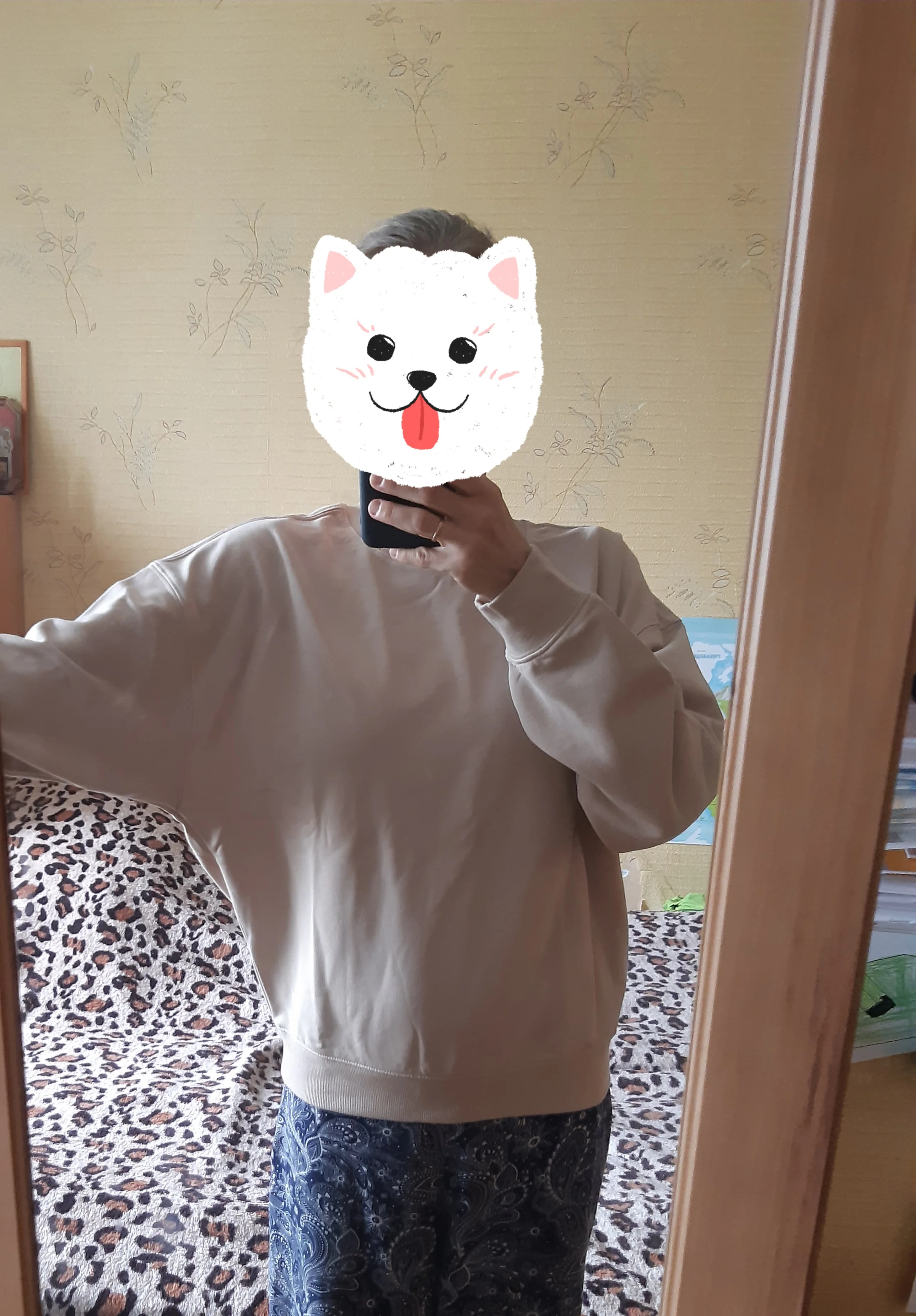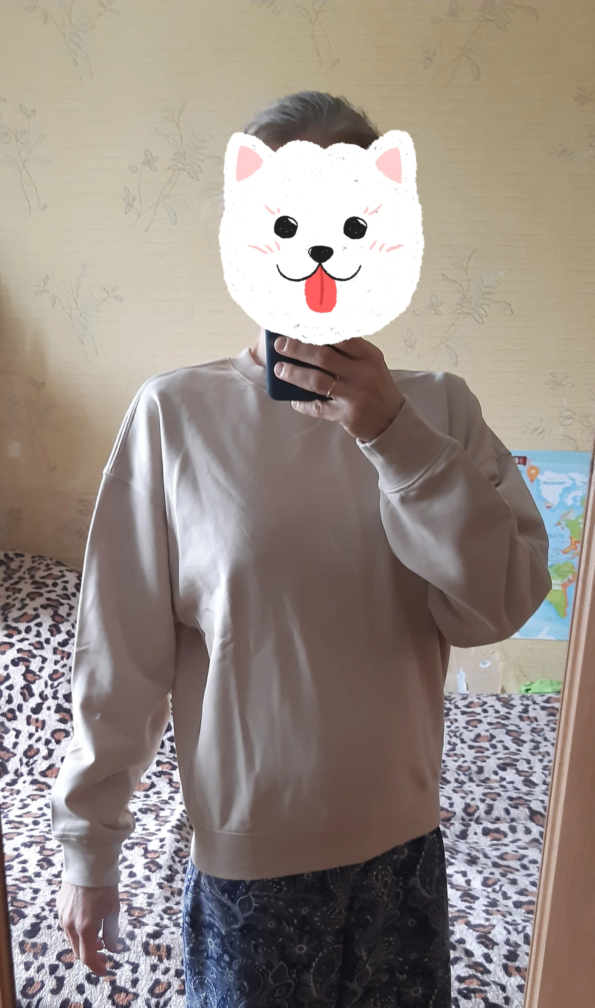 Качество свитшот отличное. Но вот фасон немного несуразный. На рост 163 рукава очень длинные. Ширина тоже непонятная, на 48-50 слишком широкая, это даже не оверсайз.