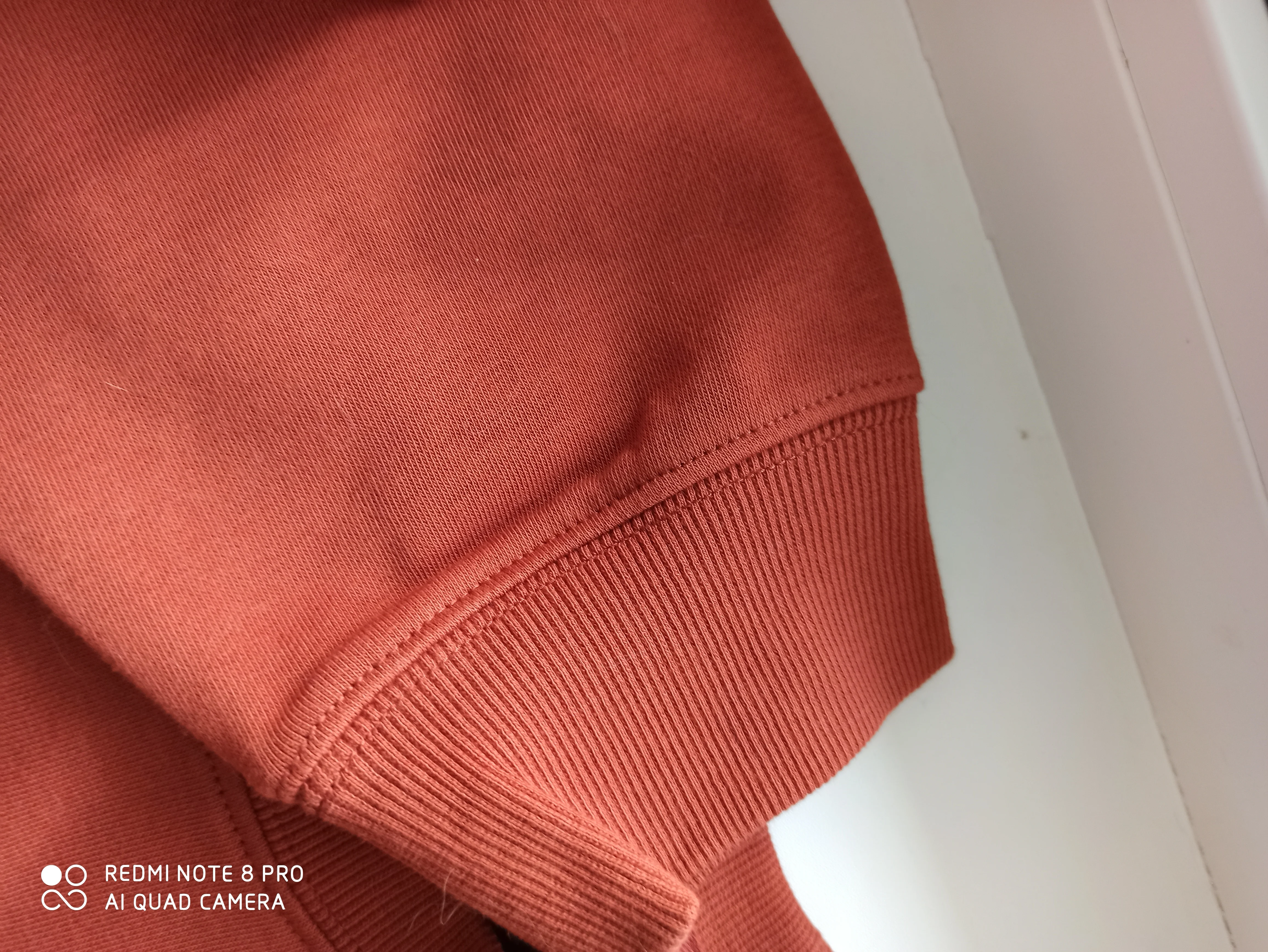 Цвет немного кирпичнее, чем ожидалось. Беру второй раз, первый - год назад примерно, когда про кофты никто не знал, тогда брала за 400)) сейчас с купоном по черной пятнице за 600. Свитшот не теплый, внутри "петелька", очень мягкий, резинки на рукавах плотные, плечи спущены. Единственный минус - товар очень долго отправляют, дней 6