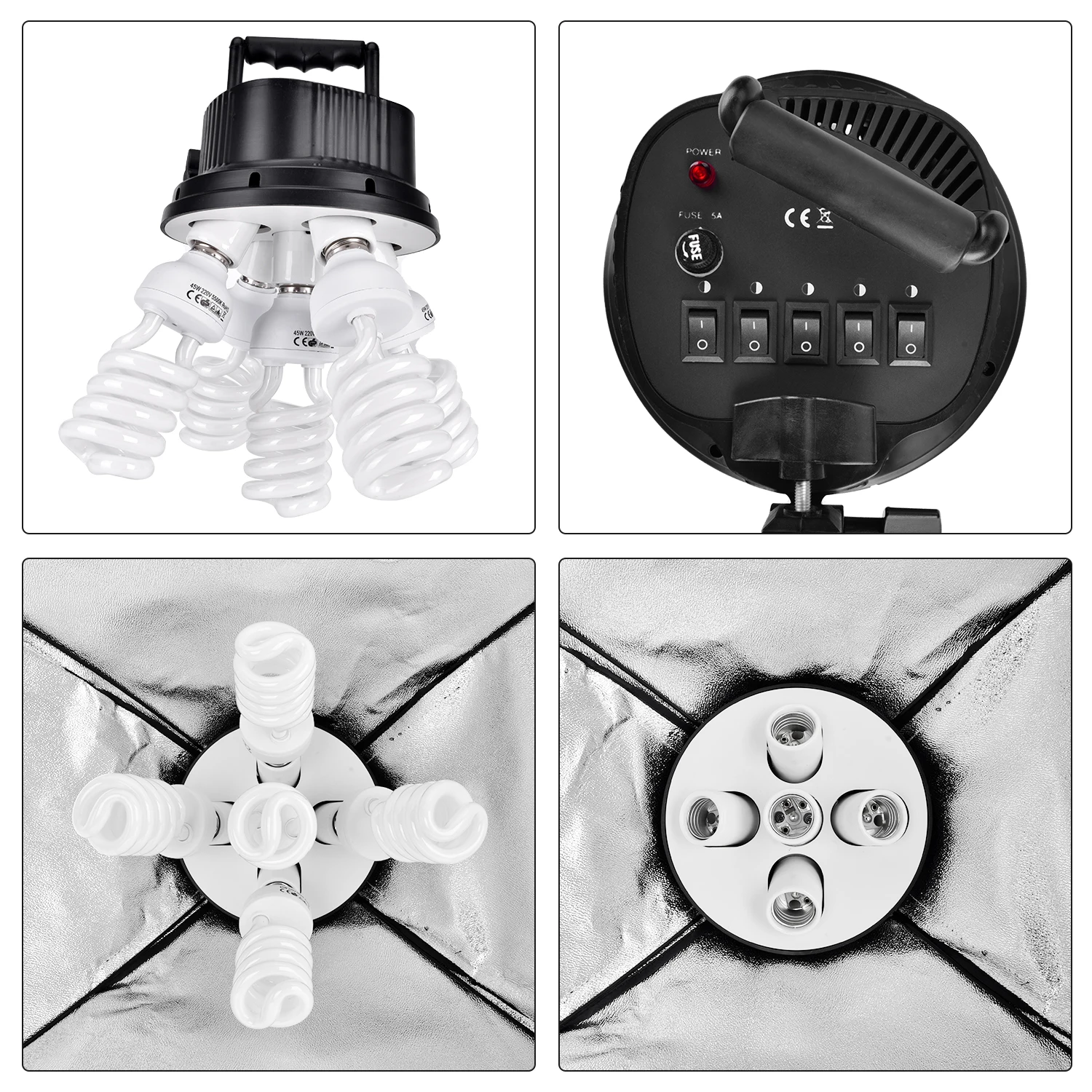 Бренд ZUOCHENНабор студийного освещенияТип лампы флуоресцентныйОбщая мощность (ватт) 3375 Вт равнаяЛампа 45 Вт 15 шт.Цветовая температура 5500KРазмер софтбокса 50х70смПодставка для фона Szie 2x3mРазмер фона 1.6x3mЦвет фона белый, черный, зеленый и серыйВес около 18 кг Светильник:Функция: для обеспечения безопасности вашего осветительного оборудования во время использования и поддержки всех основных фототехнических приборов, включая отражатели, софтбоксы, фонари, зонты, фоны и многое другое.Прочная безопасная 3 ножки с заблокированной системой может надежно удерживать светильник и зонтик и мягкий ящик.Тип: Штатив для фотосъемкиЦвет: черныйМатериал: алюминиевый сплавРабочая высота стойки: 0,68 М ~ 2 мМаксимальная высота: 200 смМаксимальная нагрузка: 4 кг/8.82lbВес: 2,3 кг 1x2 м подставка с стрелой:Длина стойки: 2 мТелескопическая стрела с 2 секциями, расширяющимися от 75 см до 170 см и 1/4 дюйма винтовой головкой и штоком для насадок.Гаечный замок имеет четыре отверстия разных размеров на каждой стороне, чтобы соответствовать различным стендамДиаметр отверстия: 31, 24, 20, 17 мм (обратите внимание, что этот метод затяжки запорной гайки компенсирует несколько мм с установками большего диаметра до заявленных размеров отверстия).Гайка замка может быть повернута, чтобы поставить свет под разными углами.2 сумки с песком и крючок обеспечивают баланс против веса света. Софтбокс:Размер: 50x70 смГнездо E 27С бесплатной внешней крышкой диффузораПревосходный смягчающий светильник и удаляет тени, чтобы сделать идеальную съемку. Серебристый внутренняя уход за кожей лица может свести к минимуму светильник потери и максимизировать светильник распространения. Белый мягкий чехол усиливает эффект мягкого светильник. 3x5 светильник адаптер:Преимущество: Безопасный в использовании, один переключатель для управления одной лампой (когда одна розетка не может быть использована, это не повлияет на другую розетку), экономия энергииИдеальный источник питания: AC100V-240V/50-60 ГцСветильник с гнездом: E27 x5PCSМатериал гнезда: керамикаАдаптер софтбокса: металлический Адаптер для установки прямоугольника, квадрата, квадрата и восьмиугольный софтбокс.Предохранитель: 5A (для справки, обратитесь к фактическому продукту) Фон:Преимущество: стоимость меньше, прост в использовании, подходит для всех приложений, таких как фильмы, спецэффекты и фотография, Портативный и складной, чтобы впитать весь светильник без отраженияРазмеры: 1,6*3 м (5FT * 10FT)Материал: Нетканая тканьЦвет: белый, черный, зеленый, серыйПримечание: Вы можете облегчить использование этих способов, когда дело доходит до некоторых складок:1. Используйте влажное полотенце, чтобы вытереть складки, а затем используйте книгу, чтобы нажать на нее некоторое время;2. Закатайте фон и отложите его в сторону.** Высокотемпературный паровой утюг не допускается. Фоновая подставка:Функция: держать фоны и 2*3 Стенд для фона легкий, сверхмощный и расширяемый как для студии, так и для улицы и всех случаев, чрезвычайно подходит для всех фотографов уровня.Тип: комплект перекладин с подставкойМатериал: алюминийВысота: до 2 м/6,6 футовШирина: до 3 м/9,8 футовРазмер посылка: 85,5*17*11 см/33,7*6,7*4,3 дюйма Панель отражателяФункция: используется для заполнения, отражения, диффузного, поглощающего или смягчающего светильник. Легко складывается и переносится.Поверхности: золотой, 