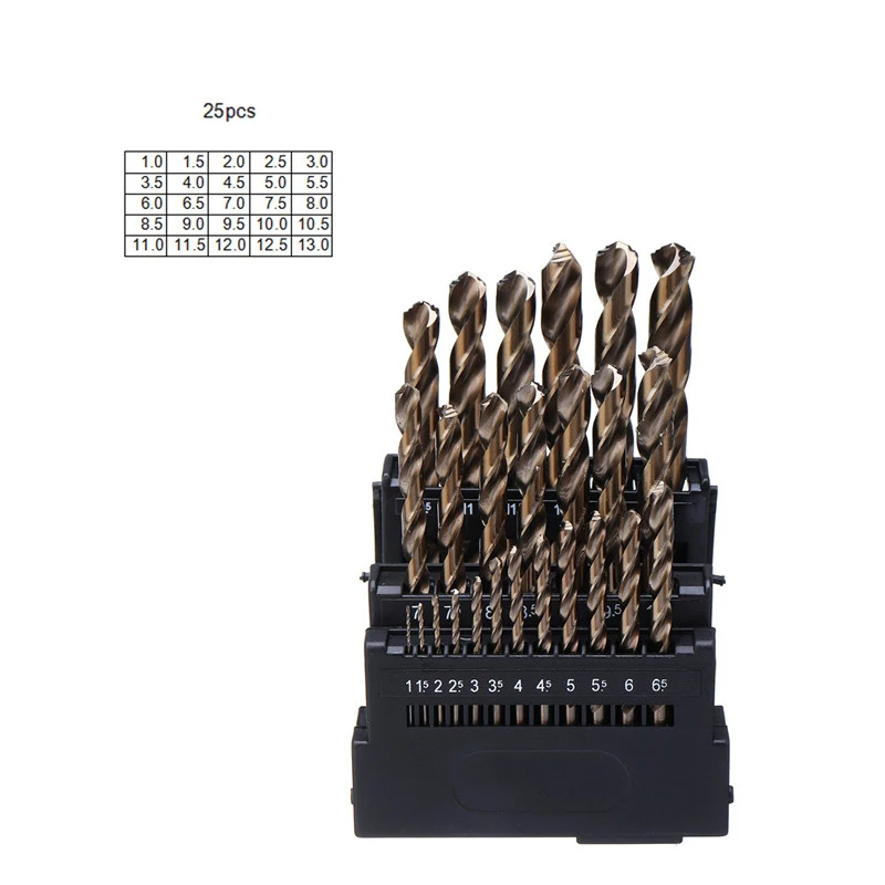 Сверла выглядят очень хорошо. Несколько штук, проверенных в случайном порядке, вырезаны из нержавеющей стали. Коробка для хранения получена с сломанным держателем сверла. Общие суждения-дрели хорошие, но в настоящее время пластиковая коробка не подходит для сверл хранения в мастерской.