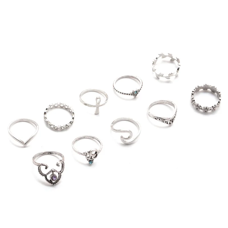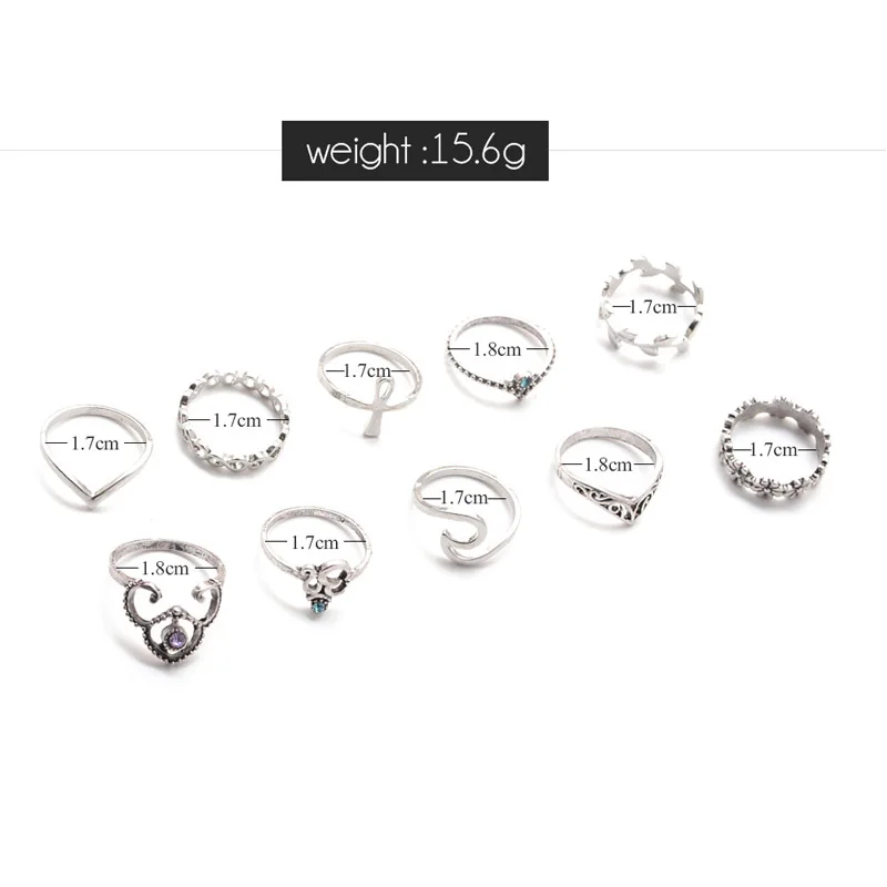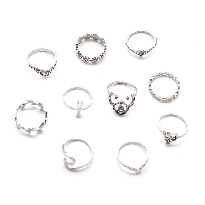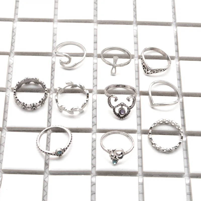 Набор женских колец в стиле бохо, винтажные перстни с вырезами в виде ветки, резных цветов, костяшек пальцев, модные ювелирные украшения, 10 шт.компл.