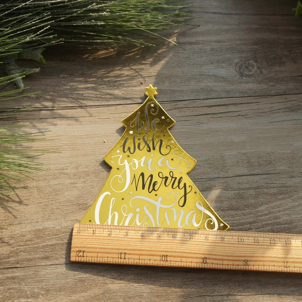 30 шт., Рождественская Золотая елка, чашка в форме снеговика радости, дизайнерские открытки, Подарочные поздравительные открытки, бирка, подарочные карты, приглашение Вечерние