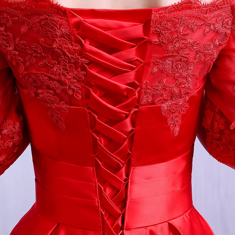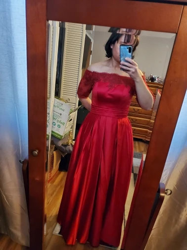 Красивое платье. Изготовлено из милого плотного атласа, платье выглядит роскошно. Шитье очень хорошо сделано. Размеры точные, как указано в рекламе, а шнуровка сзади позволяет вам соответствовать вашему телу. Красный-это насыщенная конфета с яблоком красного цвета. Рукава благородные. Вы не будете разочарованы; Я настоятельно рекомендую это платье и этого продавца.
