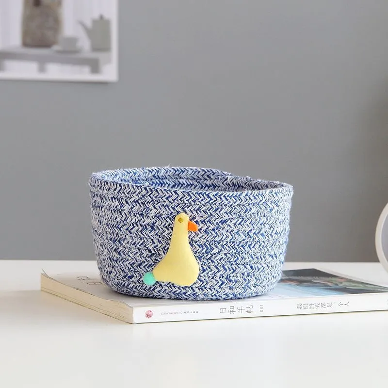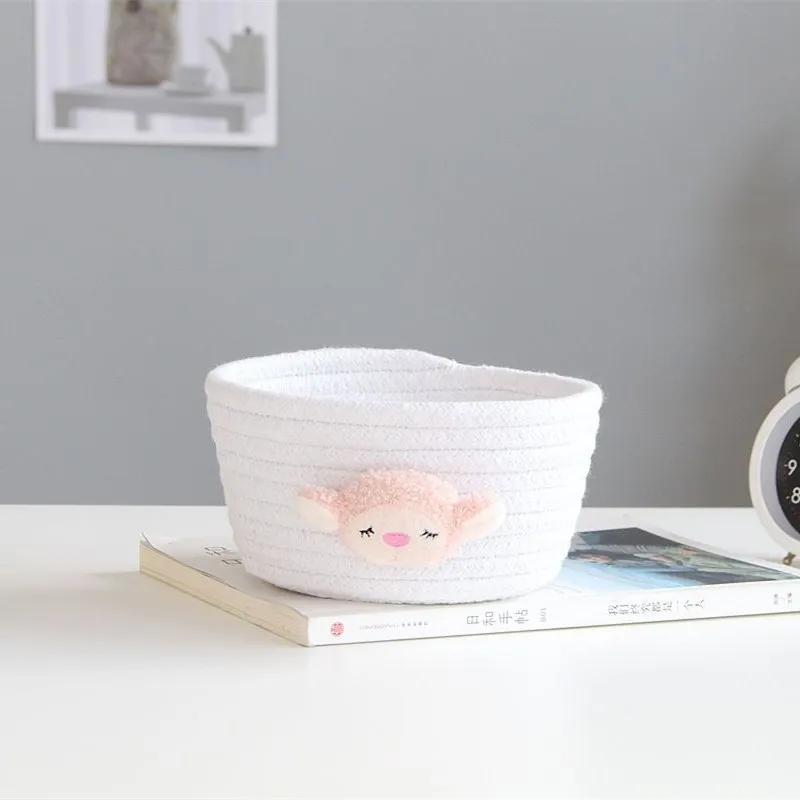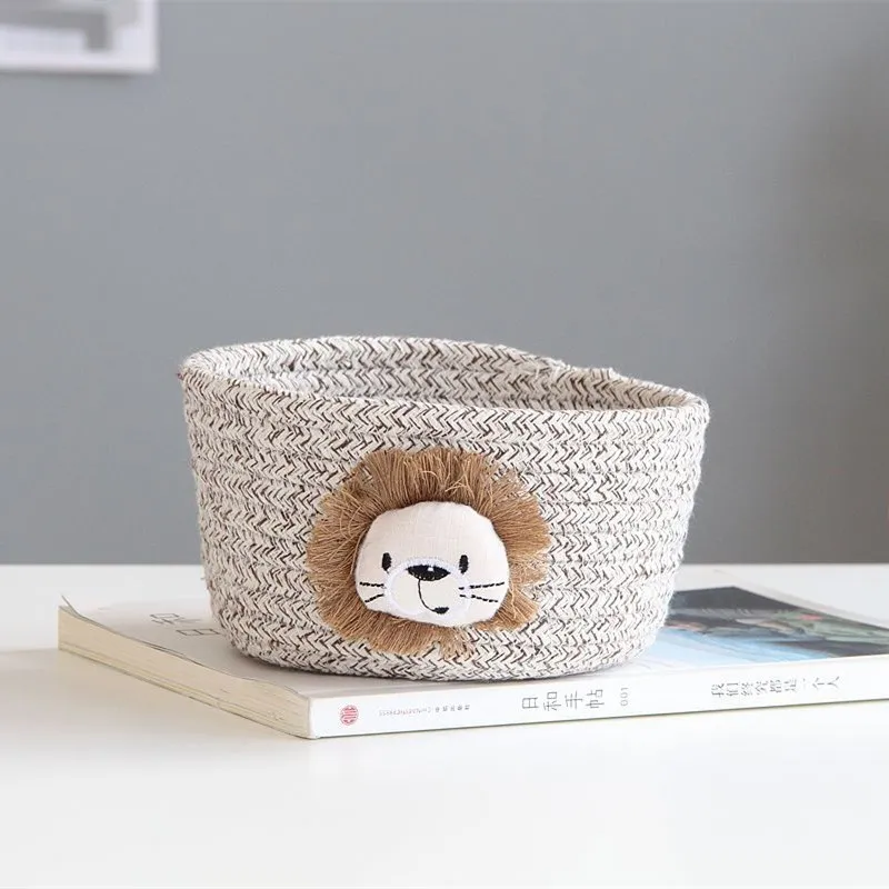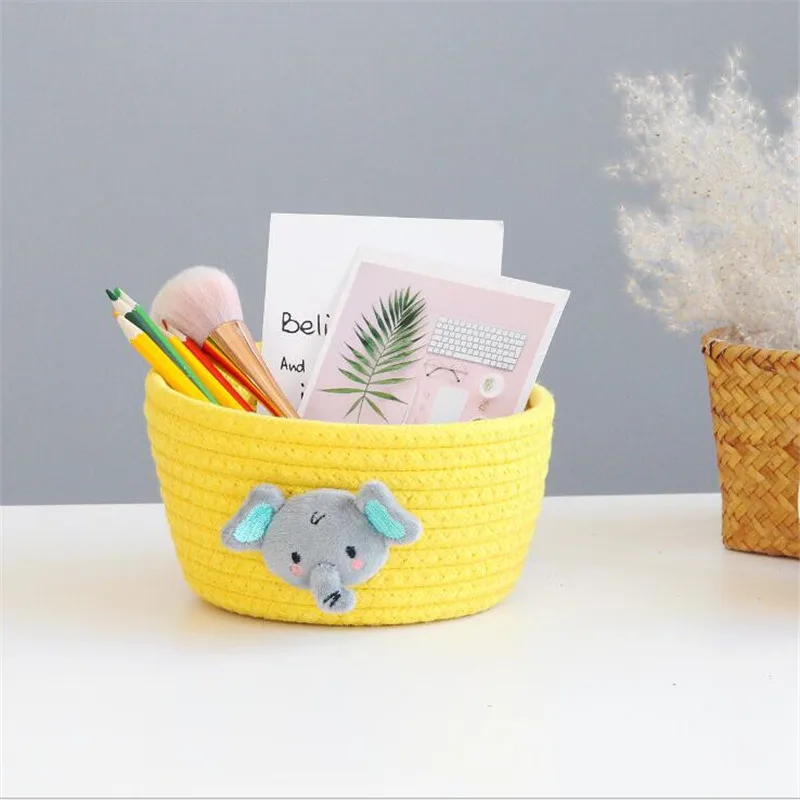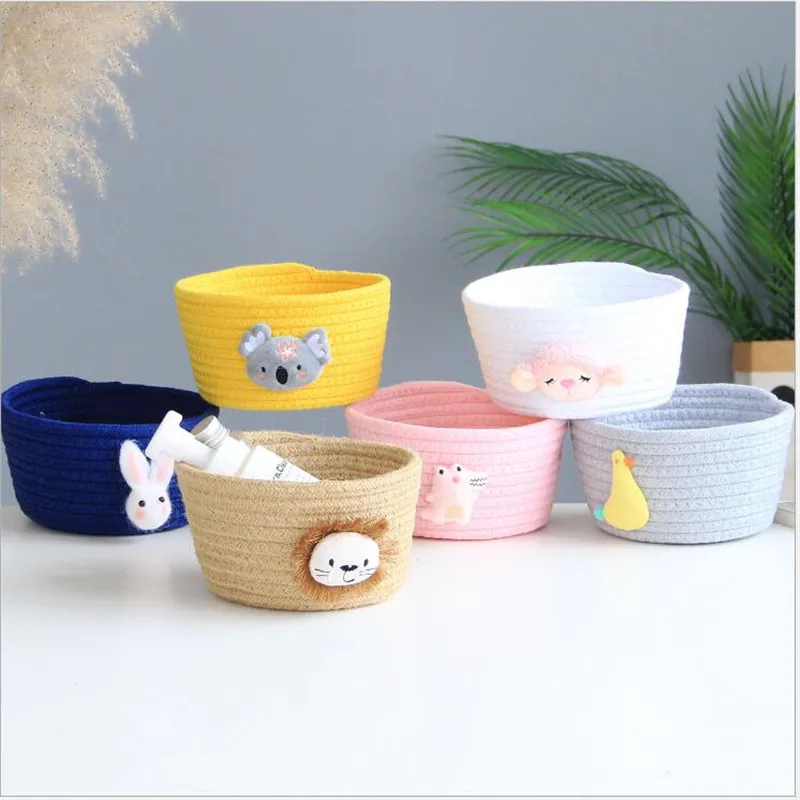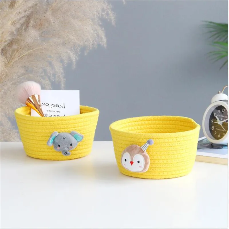 Хлопковая веревка, корзины для хранения с животными, Детская модель, ручная работа, ткачество, Настольная коробка-органайзер для всякой всячины