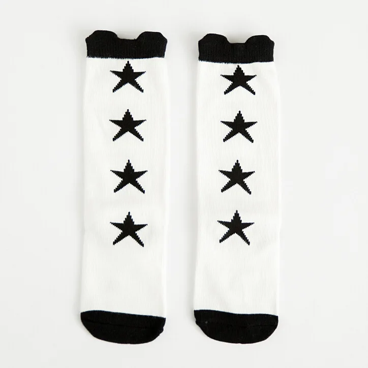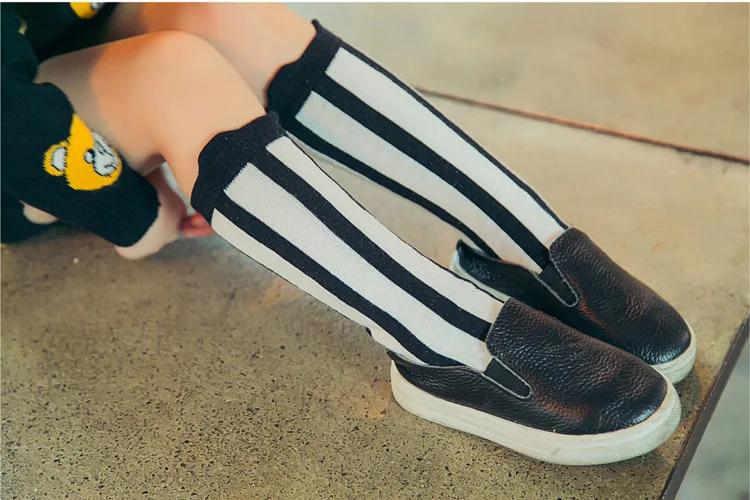 Детские носки, длинные гольфы, хлопковые черно-белые детские высокие носки в Вертикальную Полоску для мальчиков и девочек, брендовые носки для новорожденных