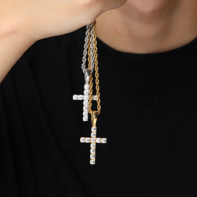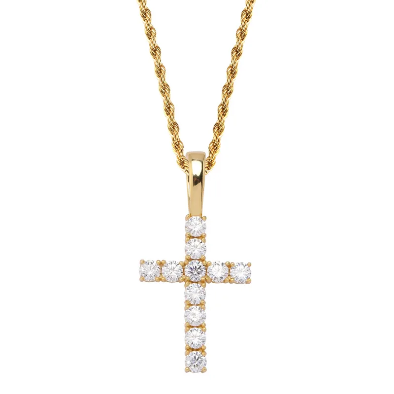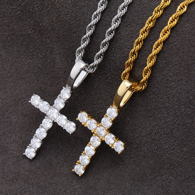 Подвеска DNSCHIC из серебра 925 пробы с микромоховым камнем, однотонный крест, винтажное ювелирное изделие с Иисусом в стиле хип-хоп, сверкающее ожерелье