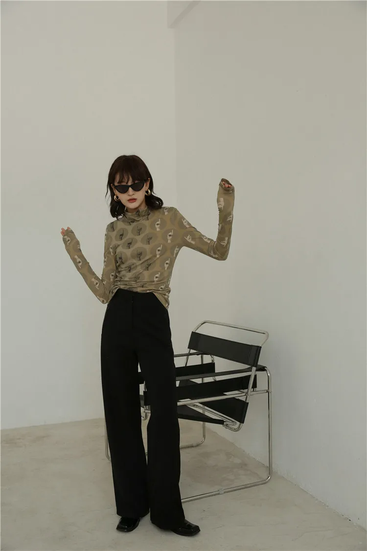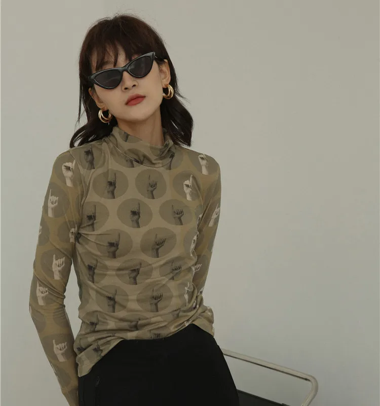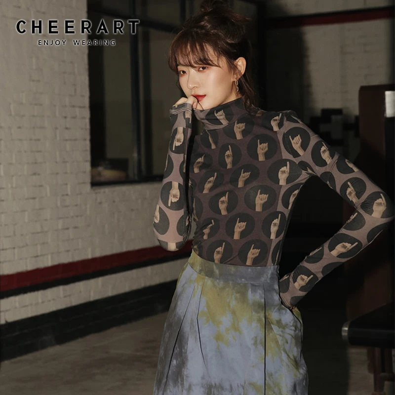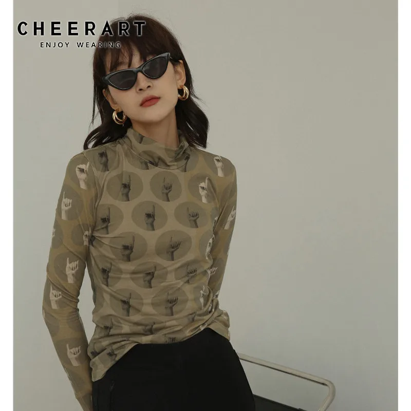Винтажная Футболка CHEERART, топ с высоким воротом и длинным рукавом, эстетическая обтягивающая футболка, женское нижнее белье, женская осенняя одежда