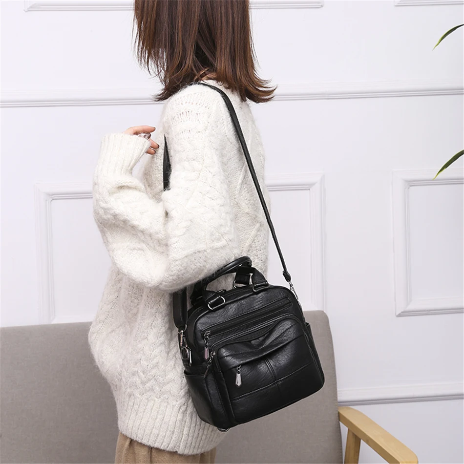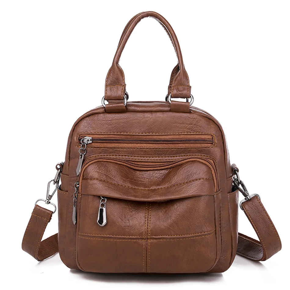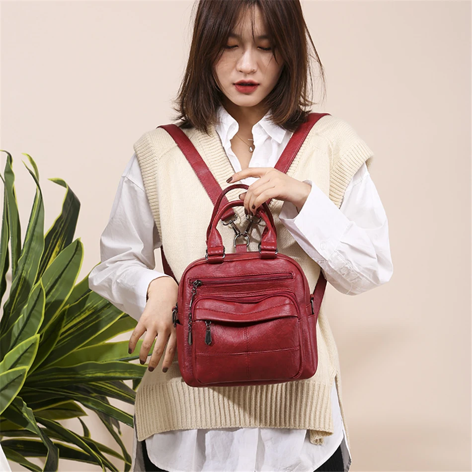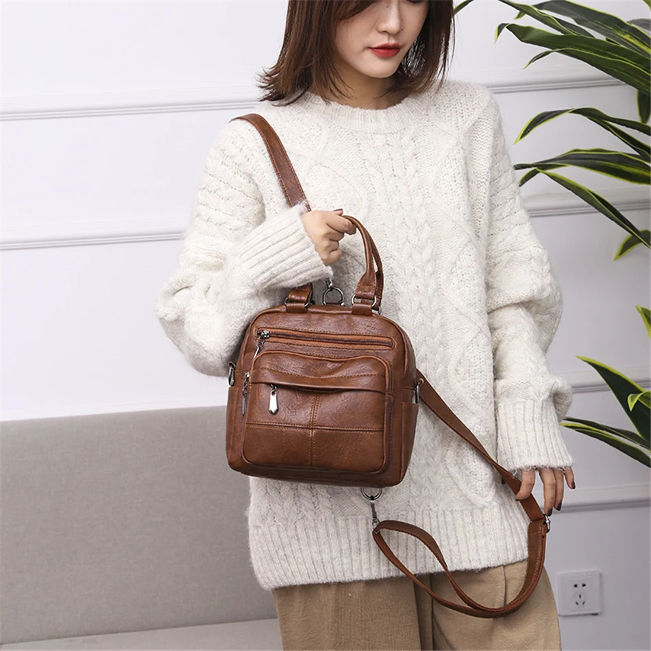 Рюкзак женский из искусственной кожи, с большим количеством карманов, винтажный, 2019