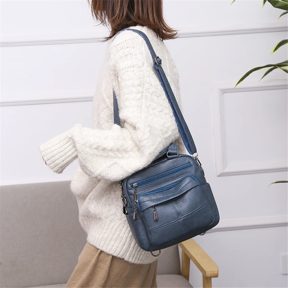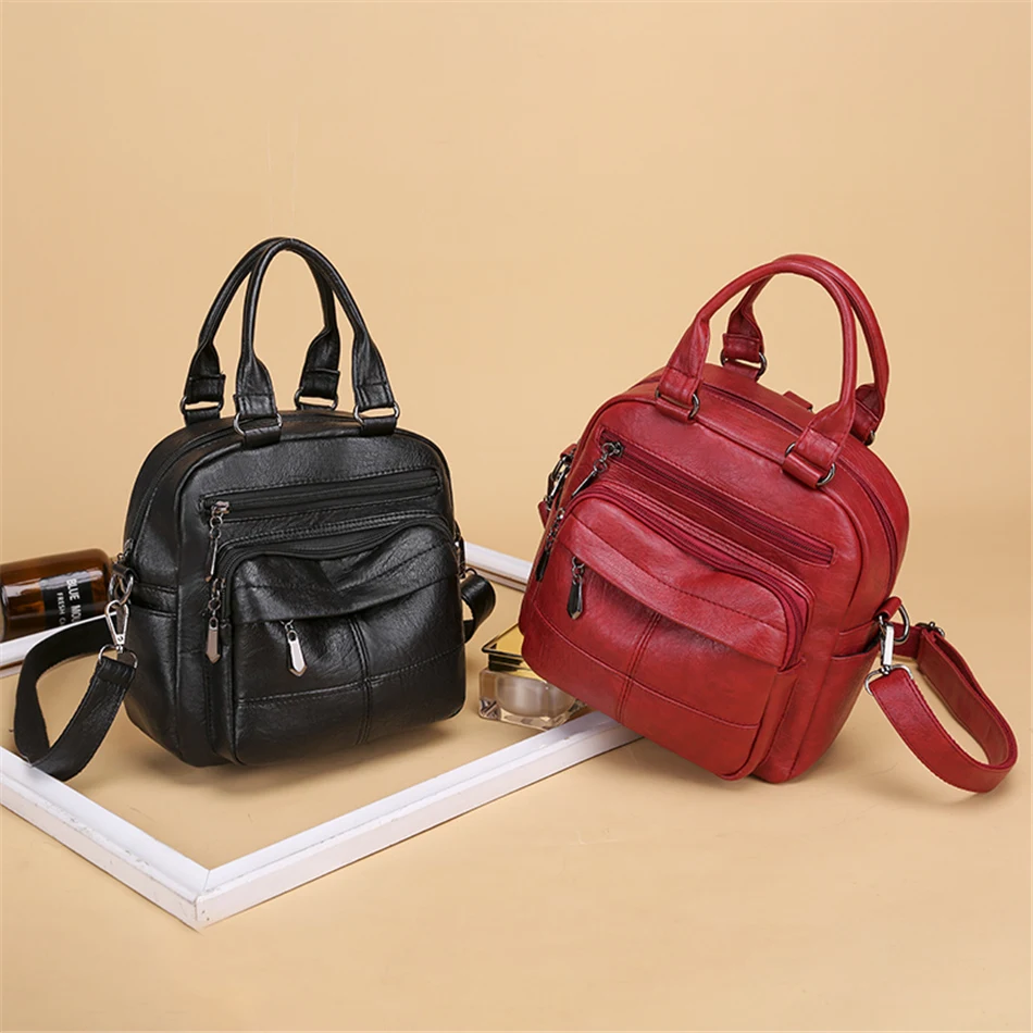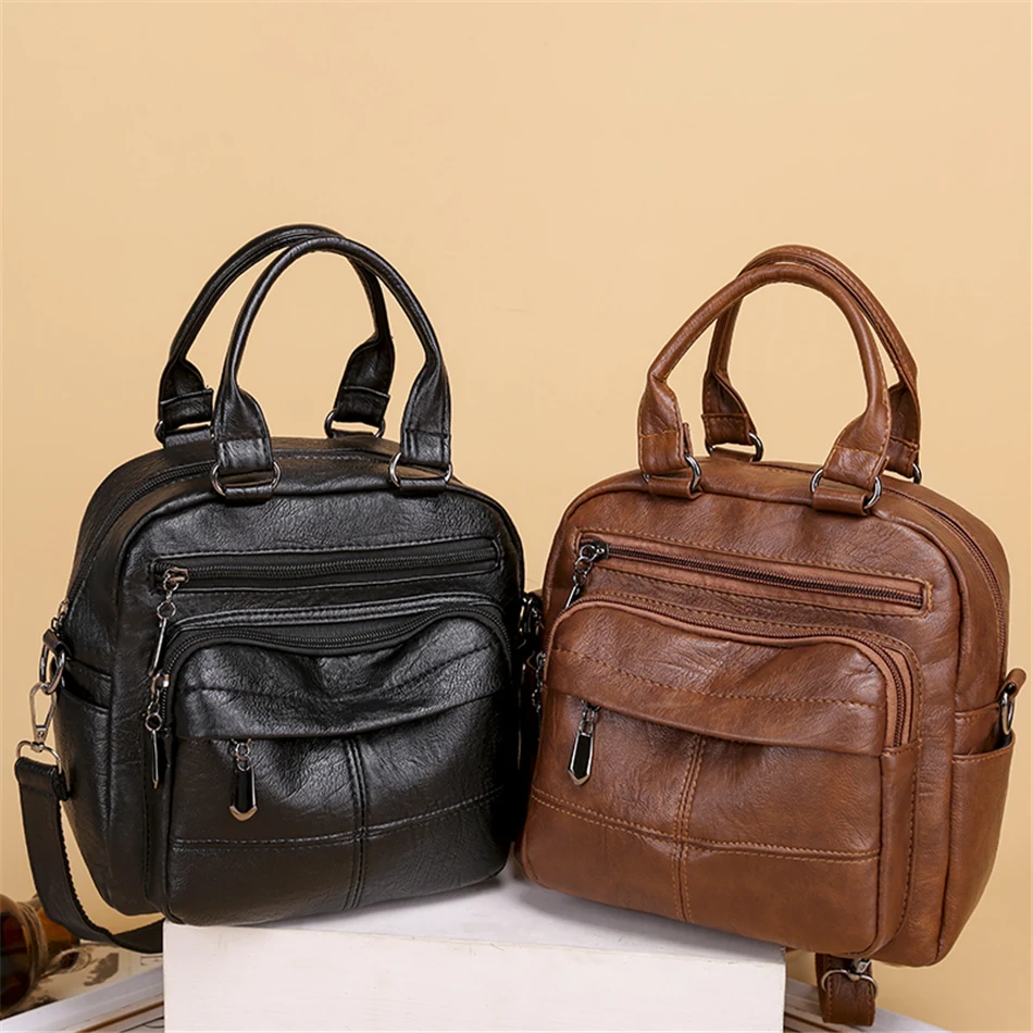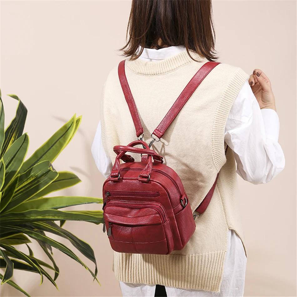 Рюкзак женский из искусственной кожи, с большим количеством карманов, винтажный, 2019