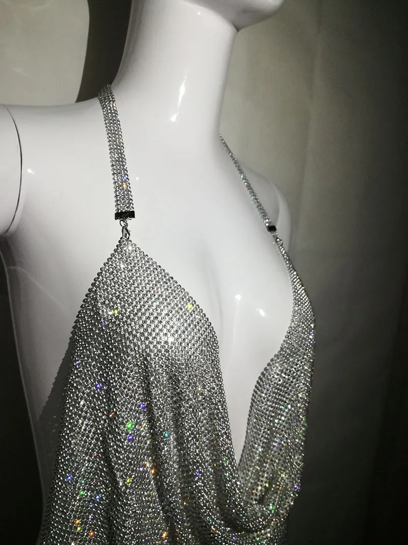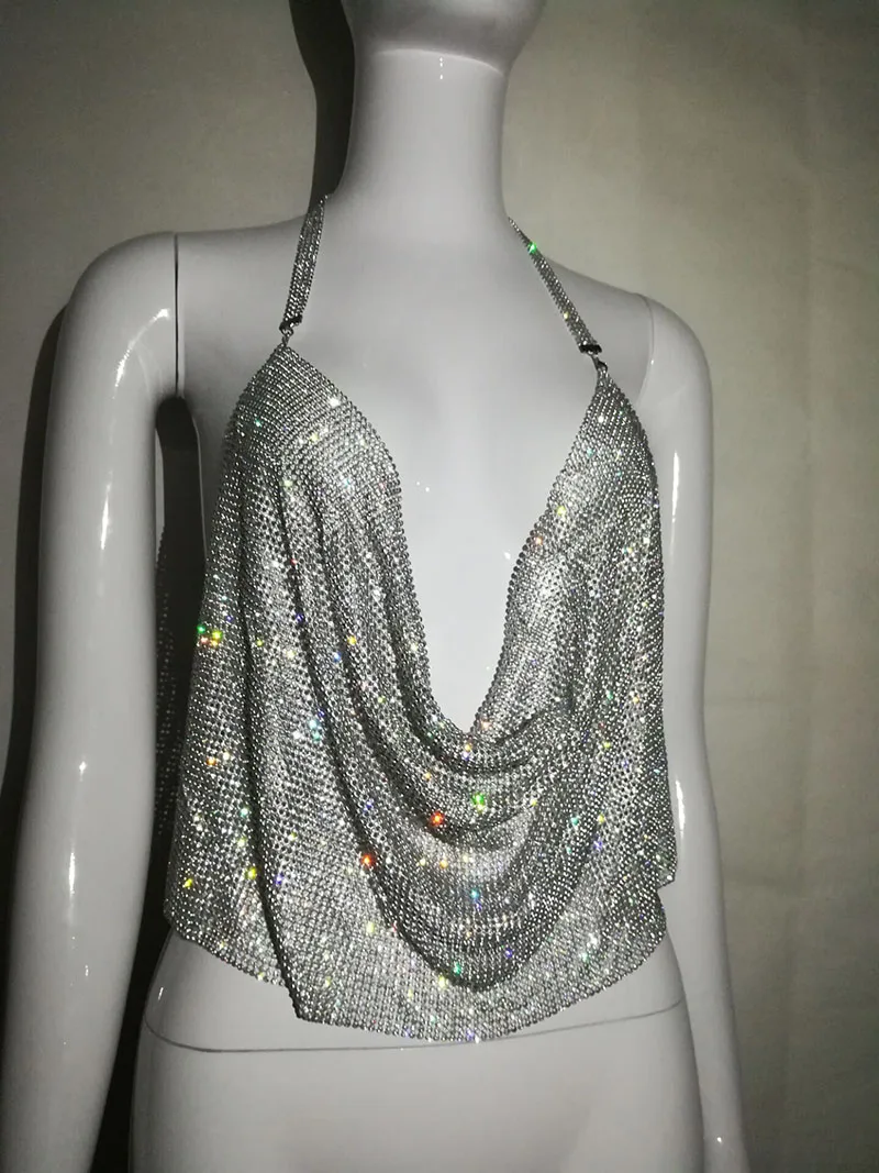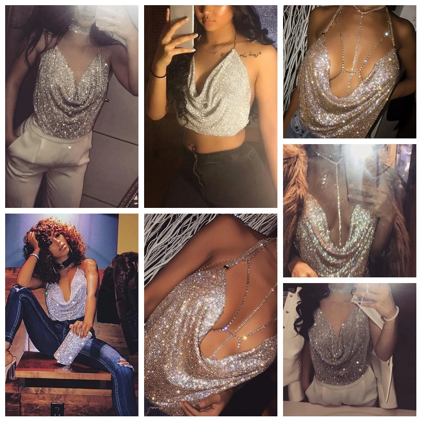 Женский топ с открытой спиной, блестящие металлические красные топы для ночного клуба, стразы, лето 2020