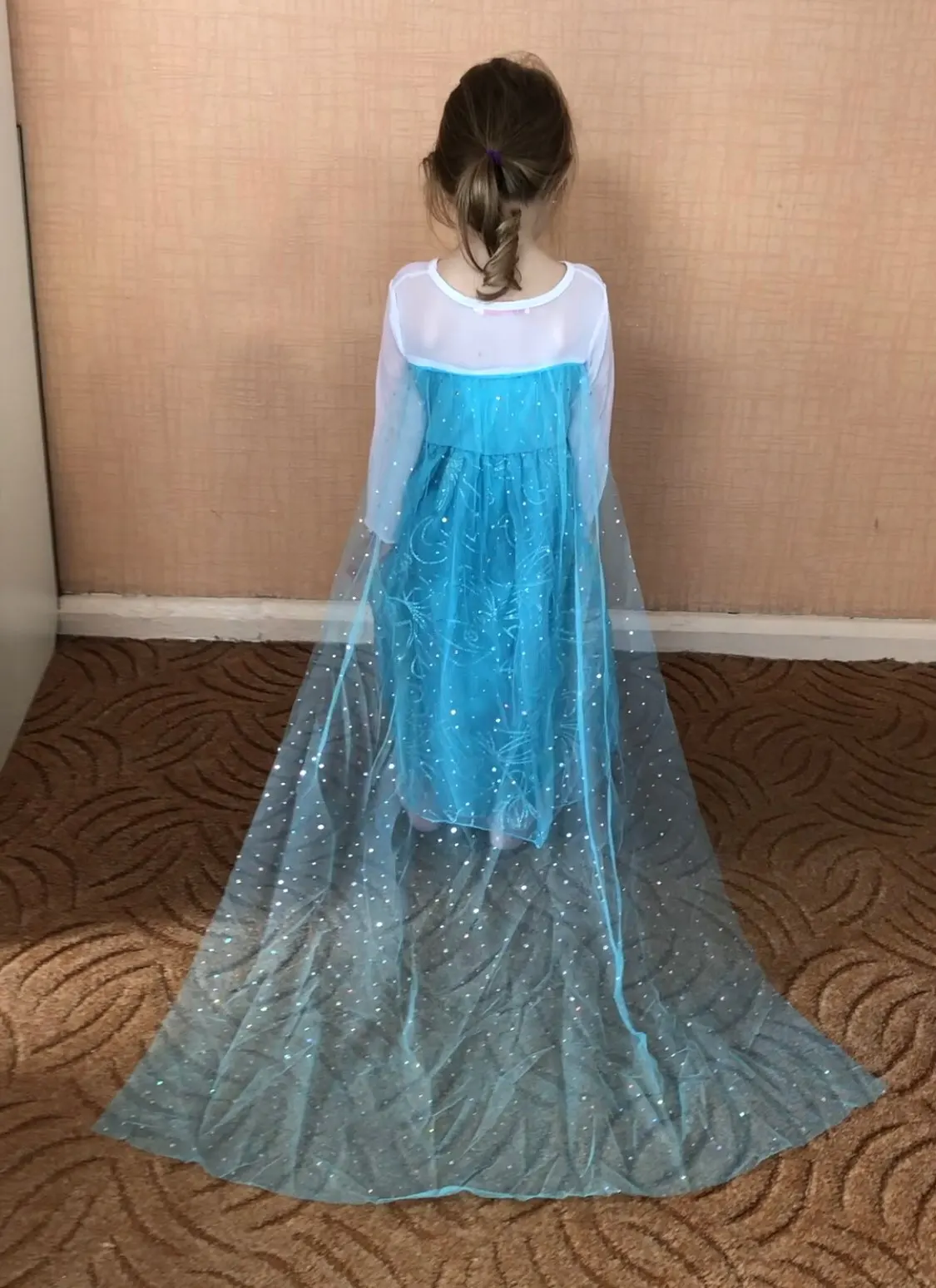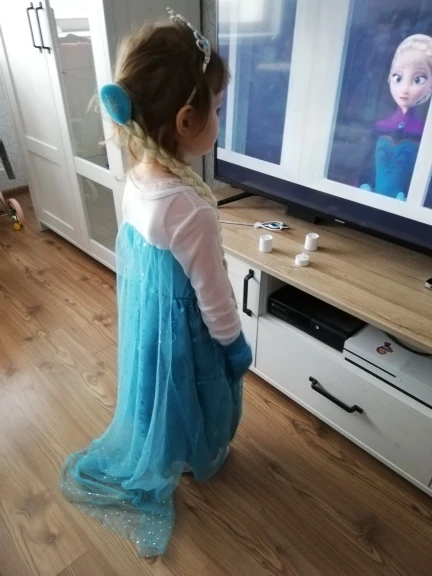 Спасибо! Дочь ходит в своем платье Эльзы на день рождения, и выглядит очень хорошо. Доставка была не самой быстрой, но ее стоит ждать. Качество платья и короны и все хорошее. Определенно рекомендую. Дочь носит 116 см одежду и платье на 120 см хорошо сидит.