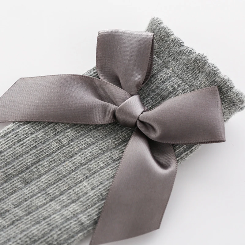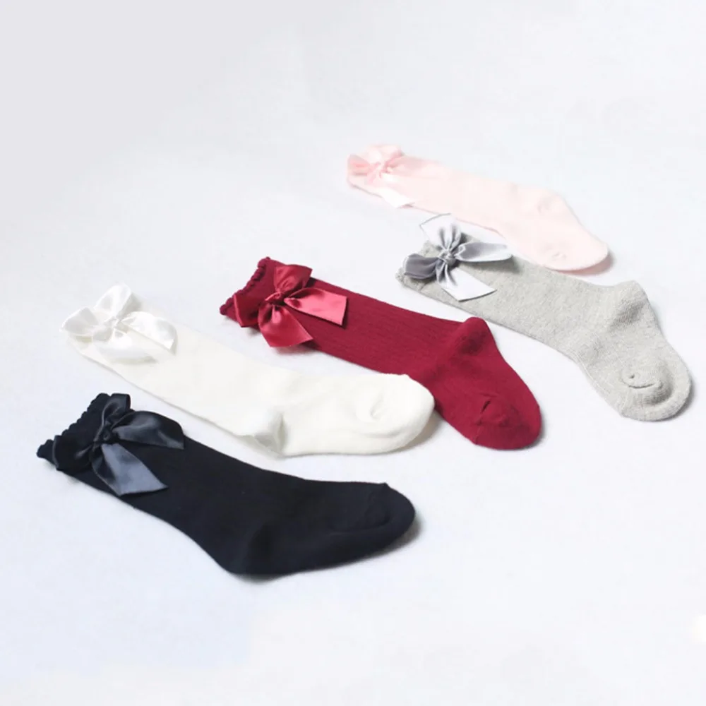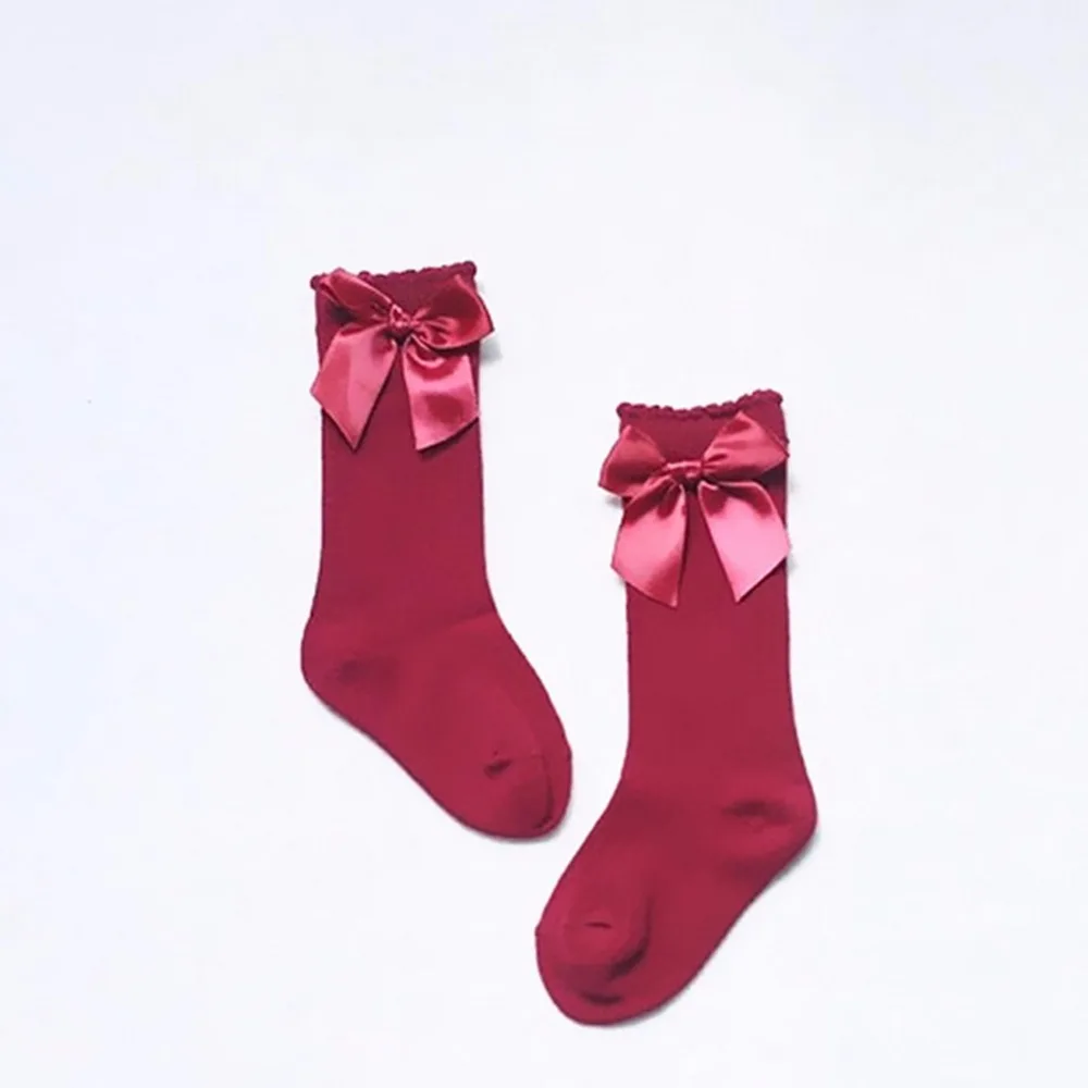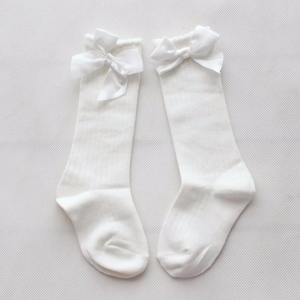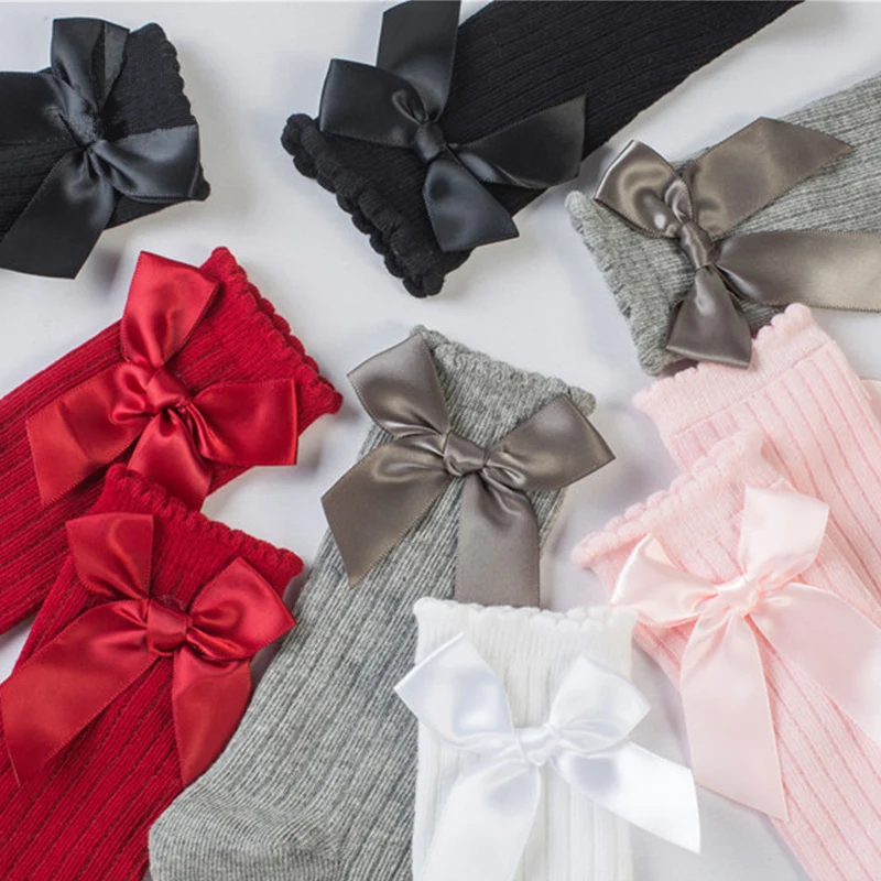 Колготки для новорожденных девочек, зимние детские чулки, хлопковые кружевные длинные колготки до колен с бантом, колготки принцессы для новорожденных